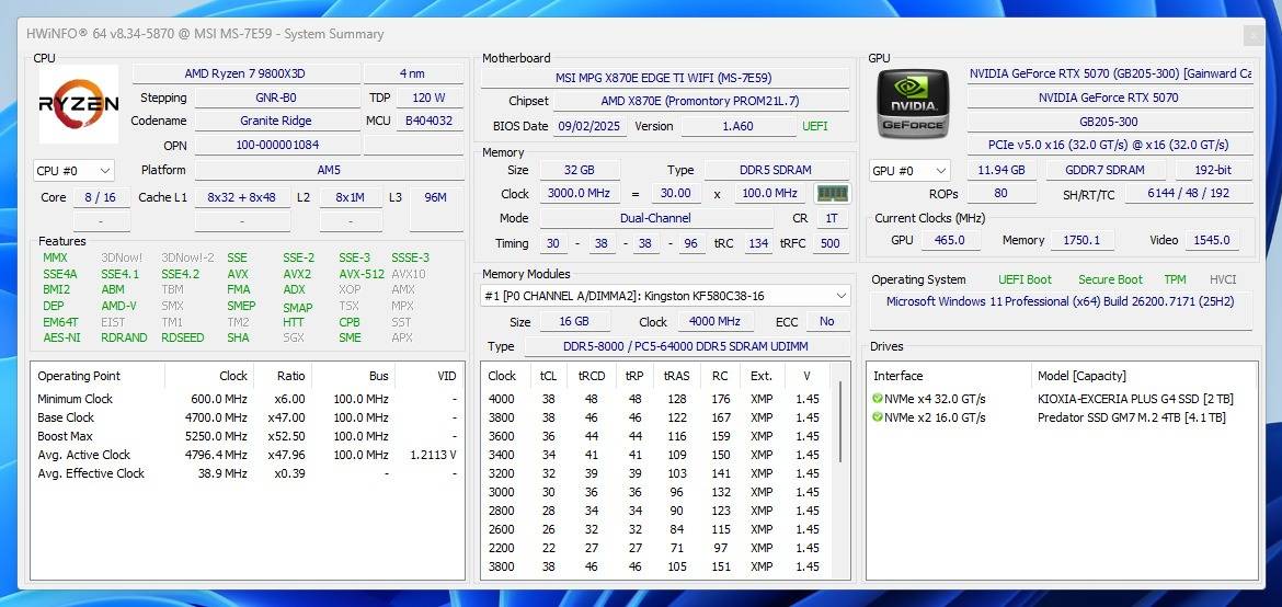 测试平台方面,为了更好地发挥出耕升RTX 5070 踏雪 OC的性能,我们采用了目前最强的游戏处理器锐龙9 R9-9800X3D,搭配微星MSI MPG X870E EDGE TI WIFI主板进行测试,并且在BIOS中开启PBO增强模式以及X3D模式。