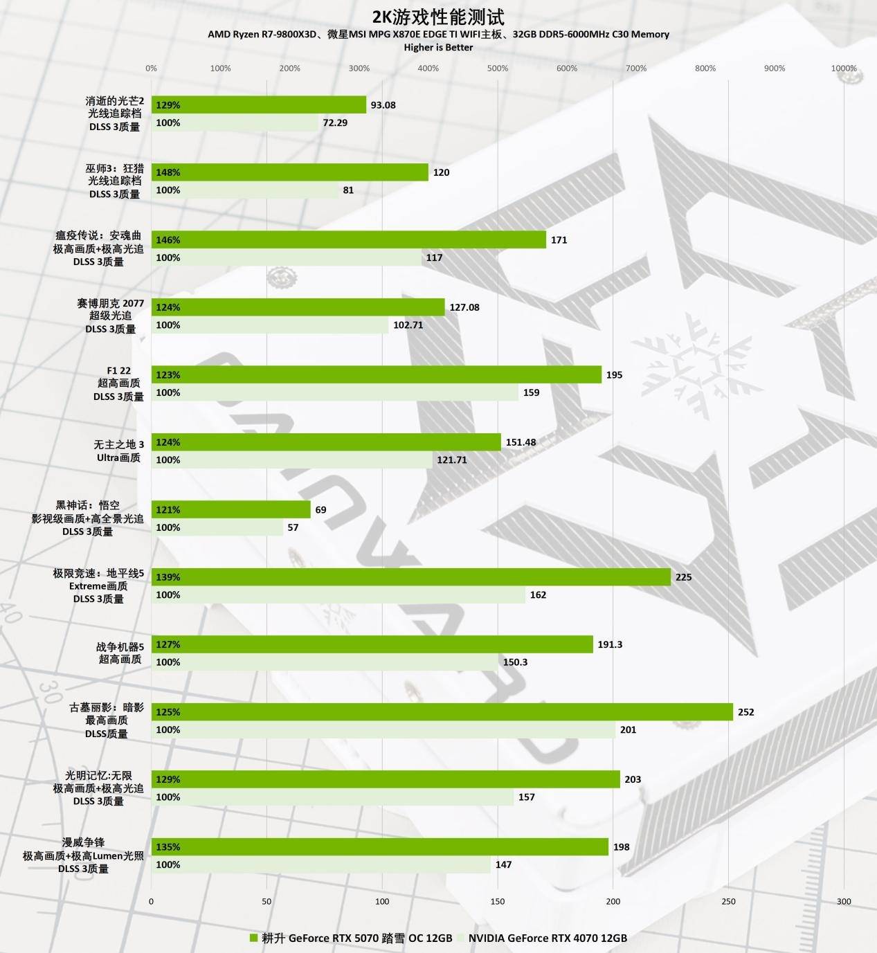 在实际测试中,耕升RTX 5070 踏雪 OC在2K分辨率下轻松应对了大多数游戏。得益于DLSS技术的加持,它能够轻松满足2K@160Hz的电竞级显示需求。当然,如果你偏好在游戏设置中开启全高特效和全景光线追踪,例如在《黑神话:悟空》这类对显卡要求极高的游戏中,游戏的流畅度可能会受到影响。