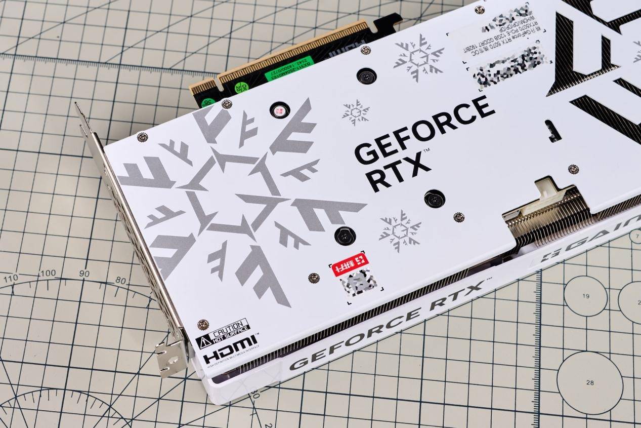 耕升RTX 5070 踏雪 OC尾部1/3 的区域采用了大面积的镂空开窗设计,这种设计构成了高效的“穿堂风”风道,配合机箱前置风扇,能迅速将热量带离显卡,避免热气在机箱内部积聚。