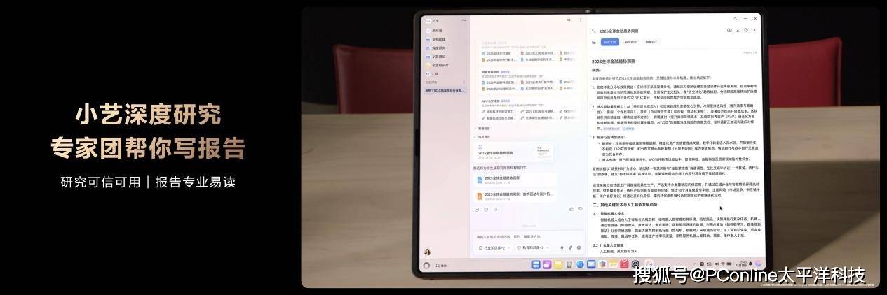 小艺深度研究具备深度搜索与分析推理能力,不仅能帮助用户收集和整理信息文档,更擅长对内容进行深度的分析和处理。例如,用户在创业初期融资阶段需要出具商业计划书时,小艺可以根据用户需求,不仅搜索在线知识,还能结合本机智能文件夹的内容进行深度分析整合,甚至对未来的商业前景和商业计划给出专业思考和建议,最终生成图文并茂的专业报告。