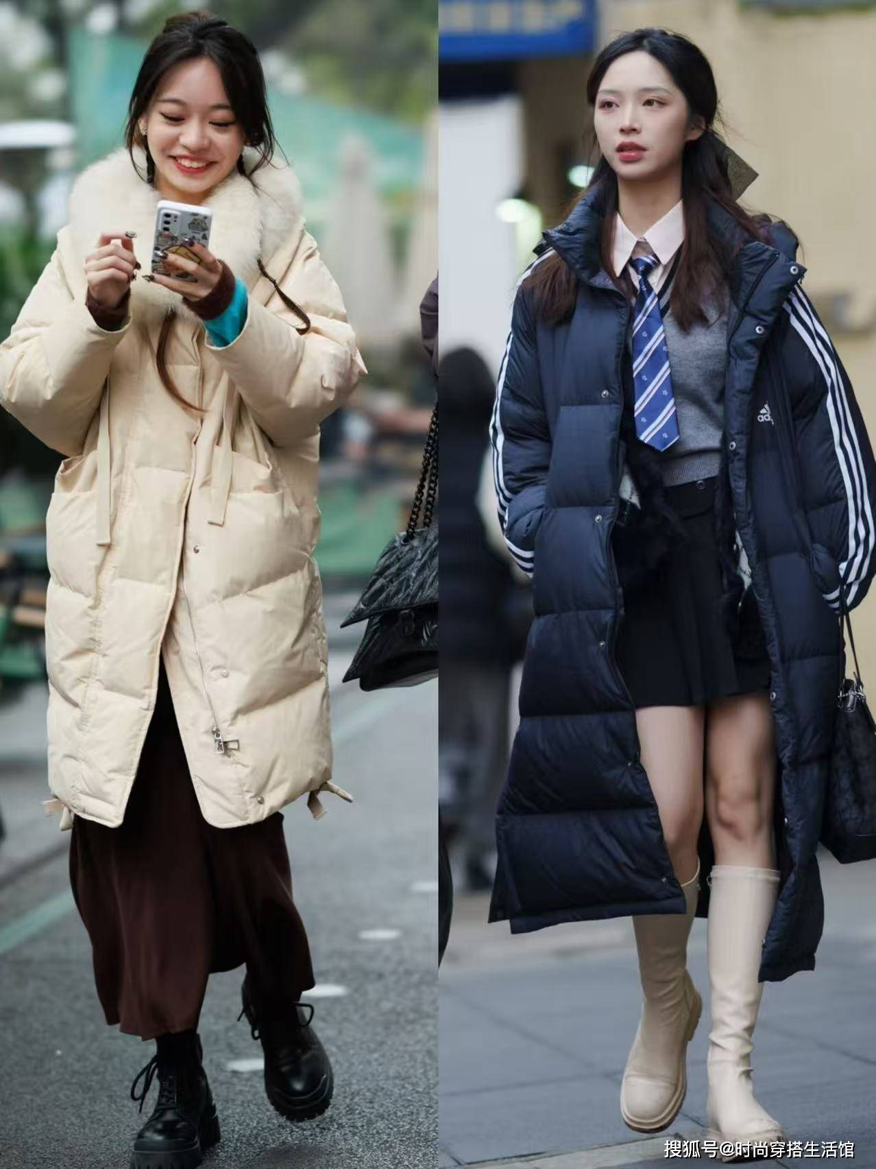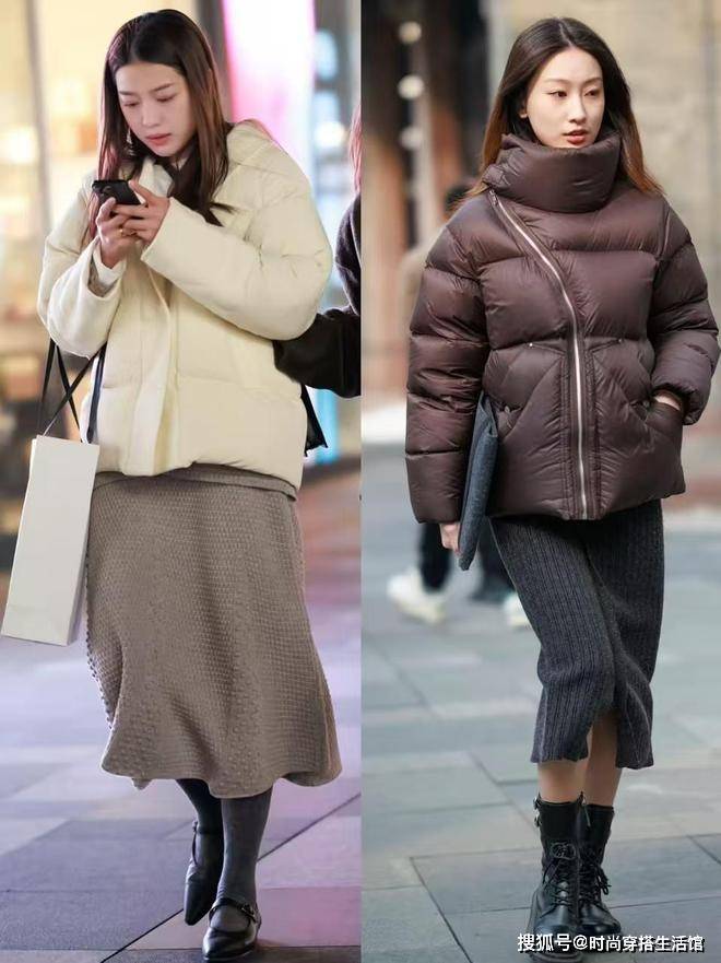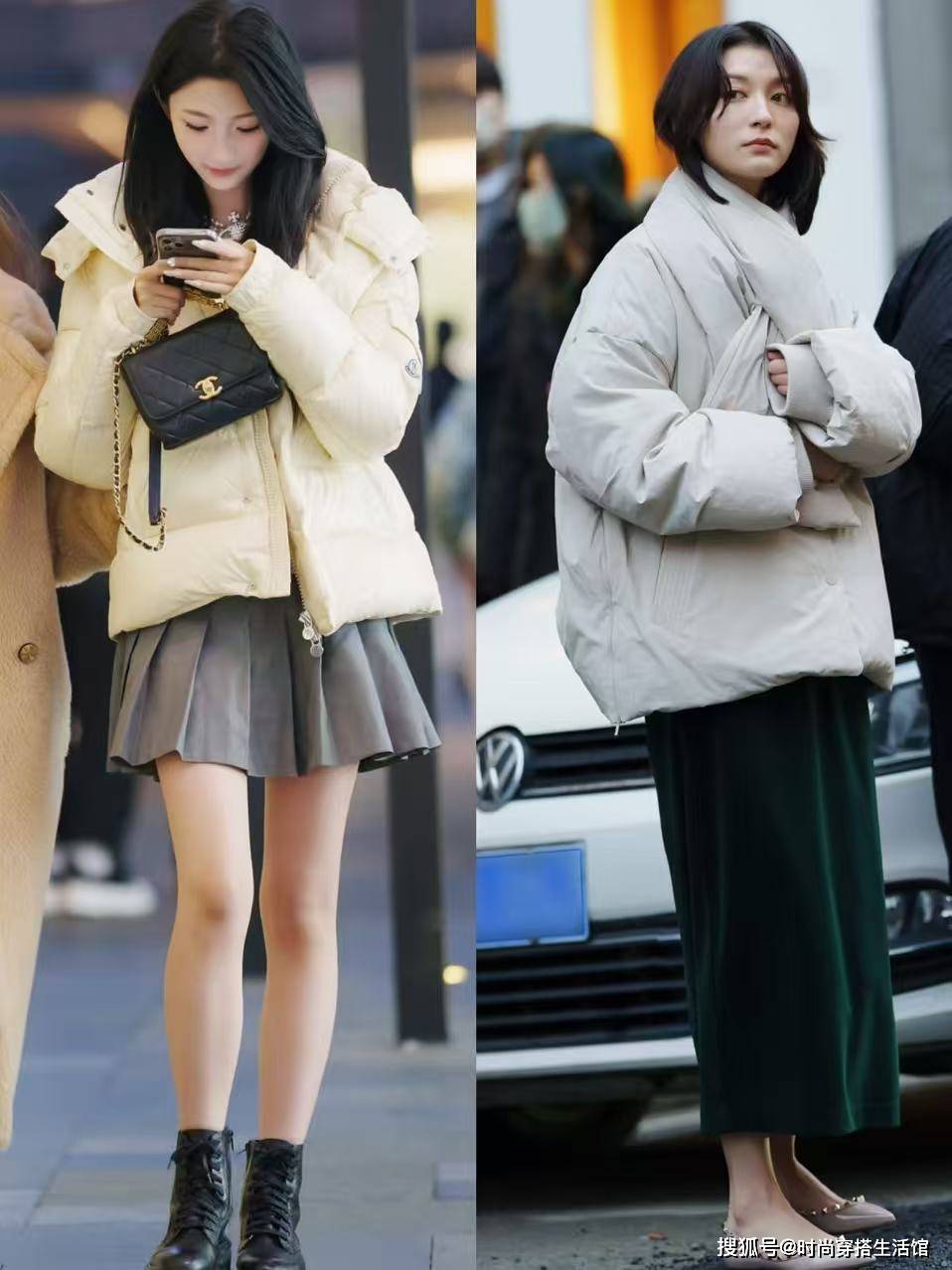 可能很多女孩之前没有尝试过用羽绒服搭配裙子,她们也无法get到这种穿搭到底有多么时髦,但根据这些时髦精的穿搭,你会发现用裤子去搭配羽绒服看上去确实是有一点累赘臃肿的,对于小个子或微胖的女生而言也并不是那么友好。