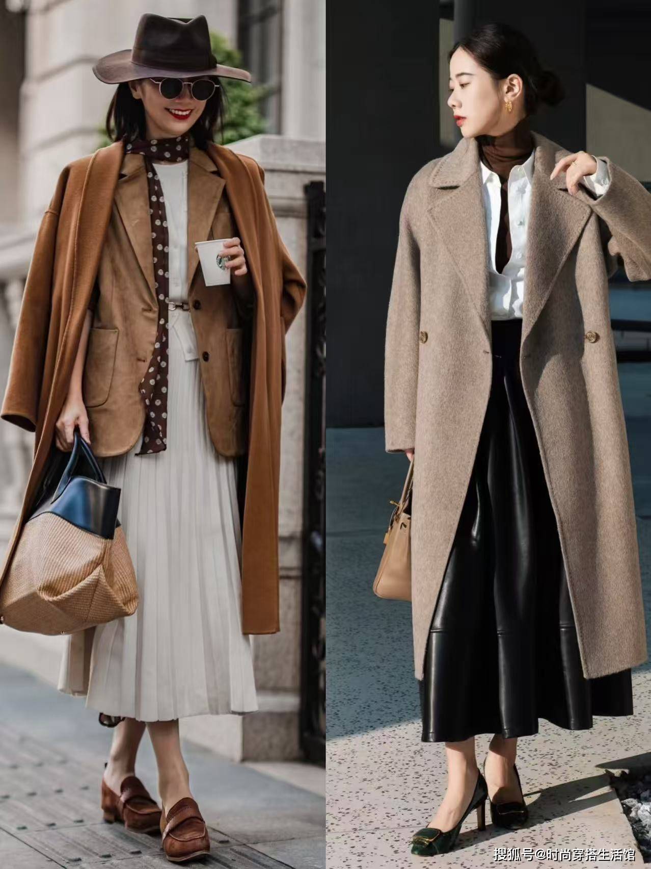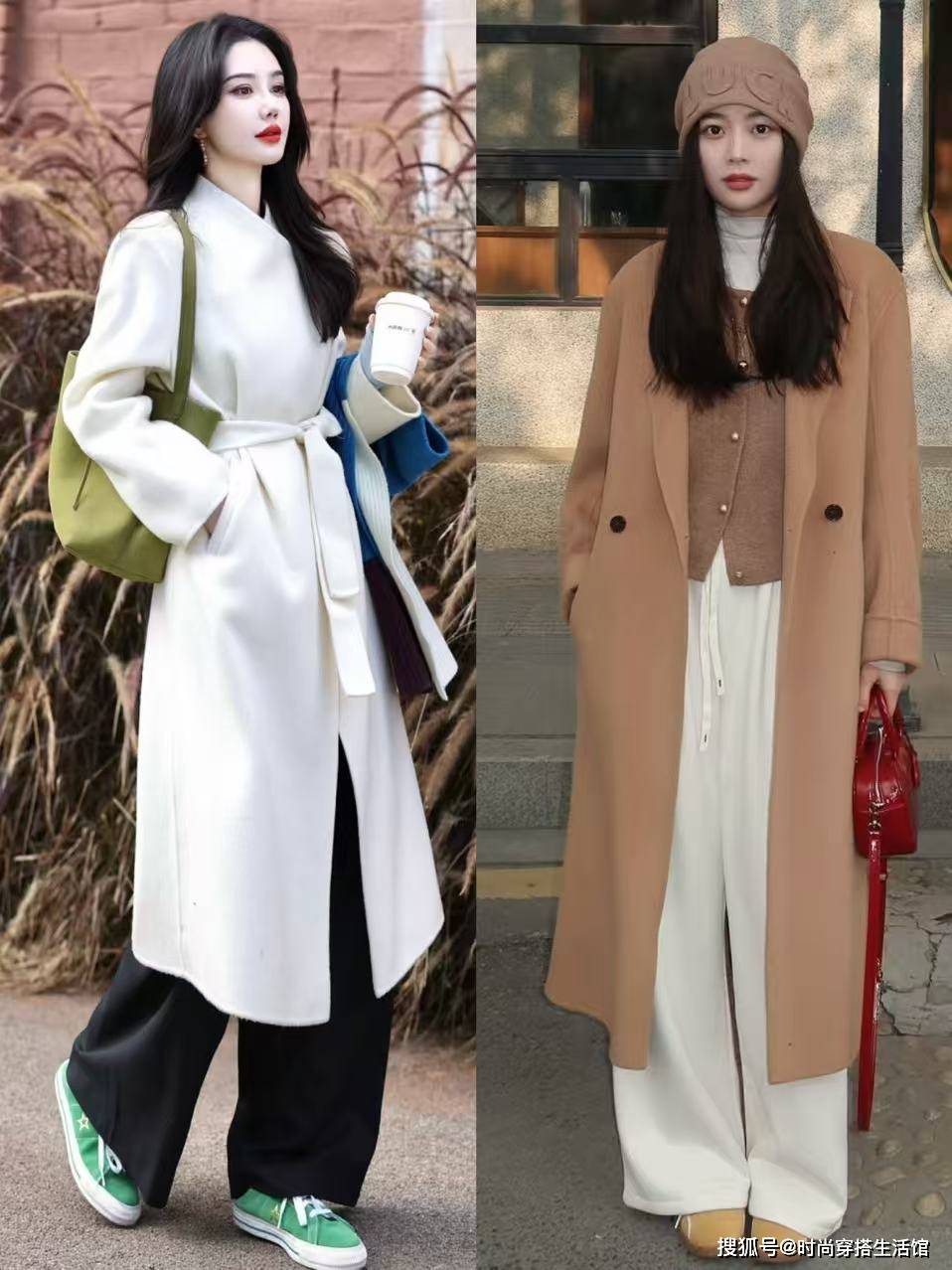 大衣不仅要选对版型,还要注重领口处的设计,如果领口太宽大,就容易把视觉重心拉低,显矮又显脸大,甚至还会压个子,对于小个子和五五分比例的女生,简直就是“灾难”,甚至还会显得上身更壮。