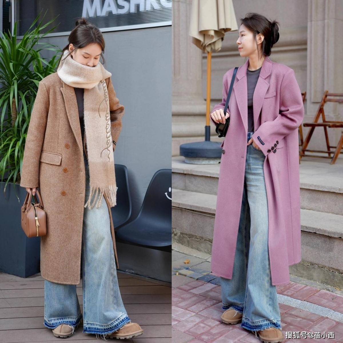 毛呢材质的大衣自带高级感和优雅感,搭配一条挺括的牛仔阔腿裤,软硬结合的材质对冲立马就丰富了搭配,风格也变得更个性潮流,随便一搭就很有回头率。