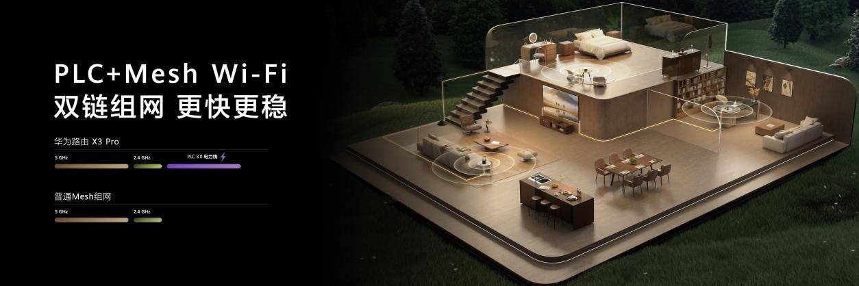 这种对细节的追求,正是华为路由 X3 Pro 日照金山能够兼顾美学与性能的关键。同样的追求,也体现在对“穿墙难”这一行业顽疾的解决思路上。为了解决这个问题,华为路由 X3 Pro 日照金山搭载了自研的第三代PLC组网技术。从第一代的“有无”到第二代的“稳定”,华为在PLC技术上持续深耕,不断突破。来到第三代PLC技术,参数实现了翻倍的突破。