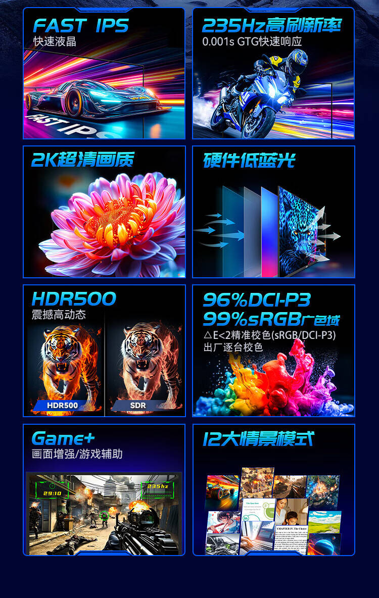 参数方面,这款显示器的分辨率是 2560*1440,像素密度可达 108 PPI,采用 DC 调光设计,sRGB 色域可达 128%,ΔE<2,原生色深为 8Bit,支持通过 FRC 技术提升至 10Bit。