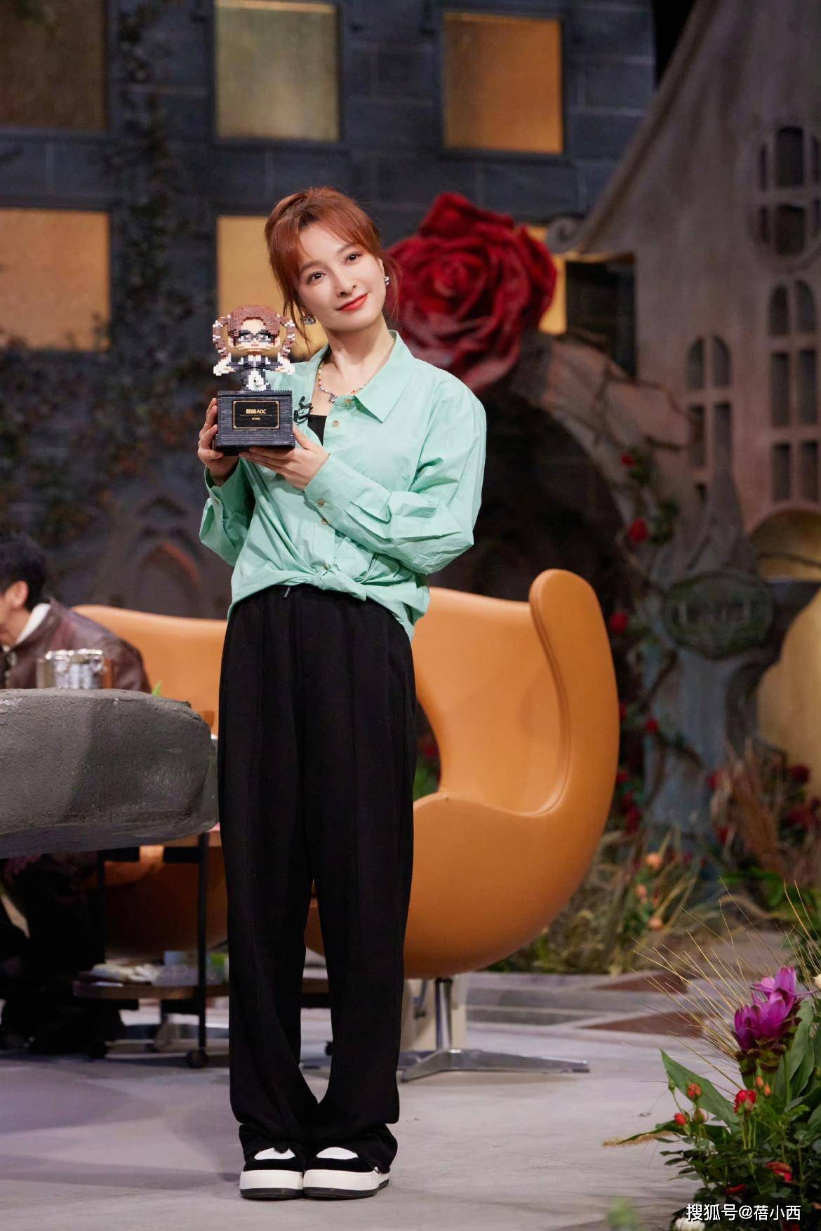 日常搭配,衬衫和阔腿裤应该是大家非常熟悉的造型,衬衫塞进高腰阔腿裤,可以修饰比例,调节腰身,宽松裤腿营造出走路带风的既视感,更是能让你的时髦感提高。看吴昕搭配绿色衬衫和黑色阔腿裤,配色一深一浅,也很有层次感哦。