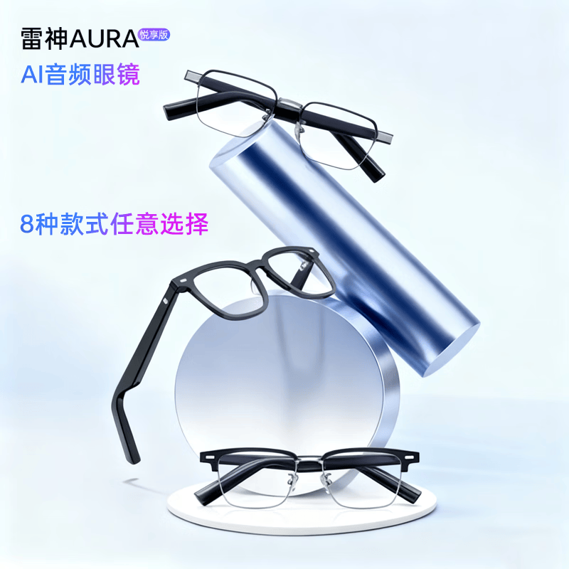 【太平洋科技快讯】11 月 26 日消息,雷神科技昨日宣布,旗下首款 AI 音频眼镜——雷神 AURA 悦享版上架开启预售。该产品主打 OWS 音频体验与AI音频助手功能,提供时尚款、商务款、精英款及飞行员款共四类八种镜框选择,起售价为 599 元。