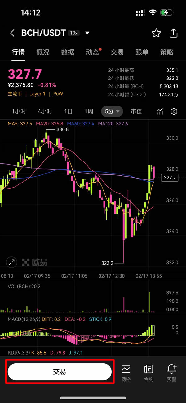 在交易页面,你可以查看BCH的实时价格、涨跌幅等信息。K线图可以帮助你分析价格走势。