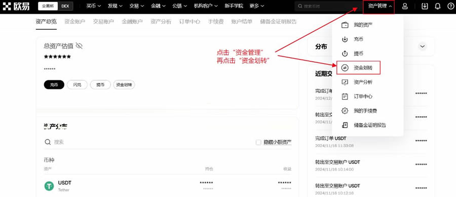 进入交易平台官网,找到“资产管理”或类似的选项,然后选择“资金转移”。