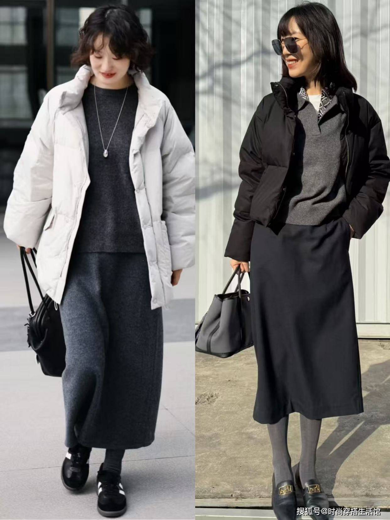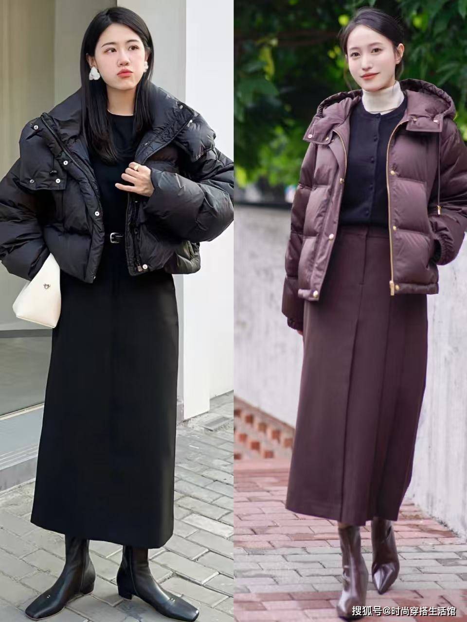 主要是因为冬天选择穿短羽绒服和裙子完全不用担心会被时尚淘汰,轻松就可以展现出高级美感,不管是上班族、学生党还是自由职业的小姐姐都可以轻松hold住。