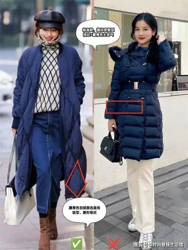 此外我们还要注意挑选合适的羽绒服,千万不要觉得说我选择修身款式的羽绒服穿在身上轻松就可以达到显瘦效果,实际上我们挑选太过于紧身的版型和横向密集型的羽绒服,不仅会让造型看起来格外的老气,同时还会降低羽绒服的档次,那么最好的方式就是选择直筒的版型和绗缝设计宽大的款式,遮肉显瘦效果会更强。