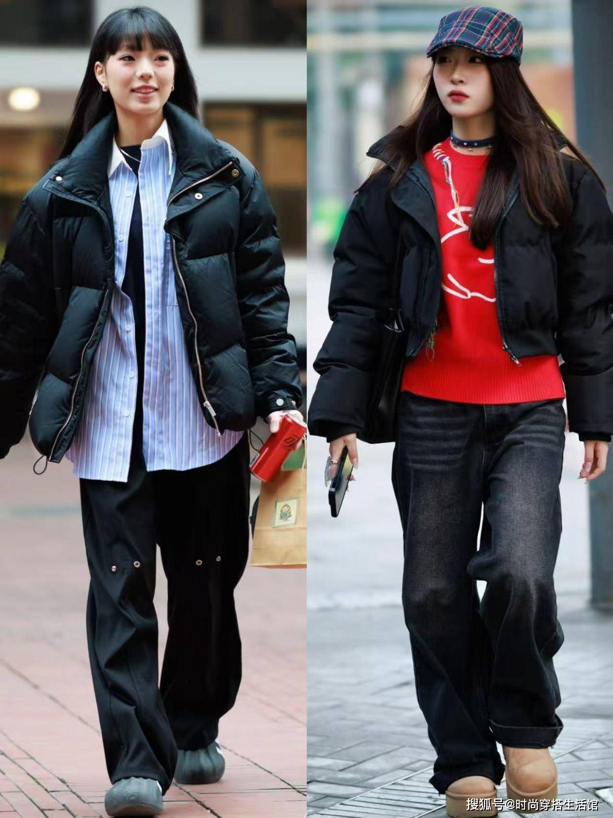 <组合三>黑色羽绒服配宽松长裤遮肉强