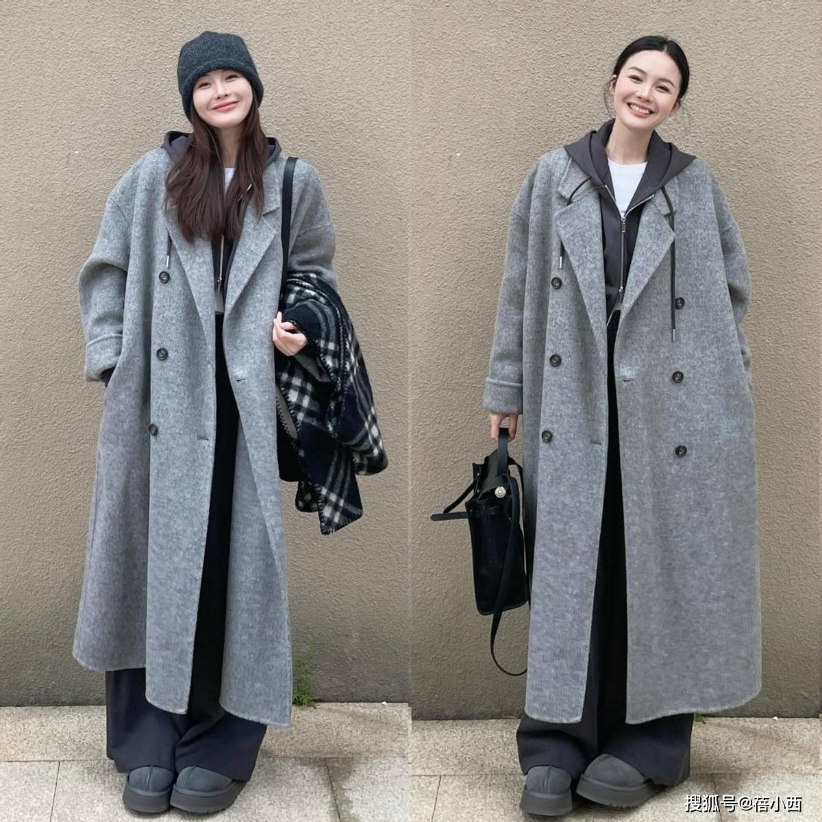 浅灰色看起来单一,实则特别高级,比起黑色的大衣,这种灰色大衣穿在身上更通透不沉闷,自带柔和滤镜,上身还特别显干净提气质,黄皮穿也不踩雷,搭配同色系阔腿裤,简单却很有气场。