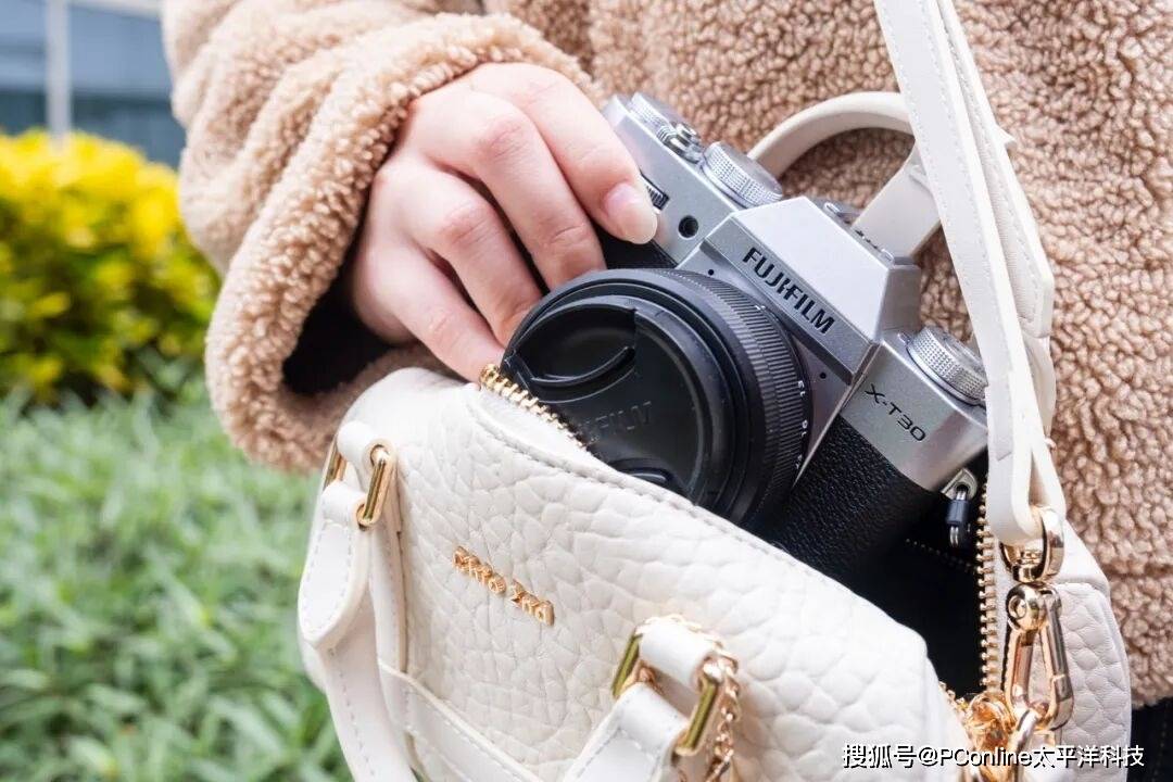 对于部分用户而言,早先发布的X-E5和X-M5有着更好的随身携带能力。相比较而言,它们在机身顶部没有“军舰头”,能更为方正地放入各式收纳空间中。但在实际的收纳中,能放入X-E5和X-M5的收纳空间也完全可以轻松收纳进X-T30Ⅲ。它的机身体积仅118.4mm x 82.8mm x 46.8mm(长高宽),甚至是“大的随身口袋”都可以轻松放入。如果为它配置FUJIFILM肩带,既不会增加额外的负重,与你穿梭市井,还能随时为你记录下当下的美好时刻。