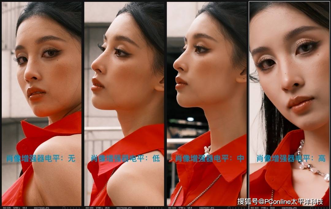 富士X-T30Ⅲ 这一次还在机身内置了全新的“肖像增强器电平”,也就是“人像美肤”,这里我们为大家做了“无/低/中/高”测试,大家可以放大查看它们的细微差别,实际体验下来,我们认为使用中档的“肖像增强器电平”是一个相对适中的选择。不好的皮肤细节/瑕疵在机身直出时已经被消除,整体的皮肤质感得到进一步的提升,颇有冰肌玉骨的刻画表达!