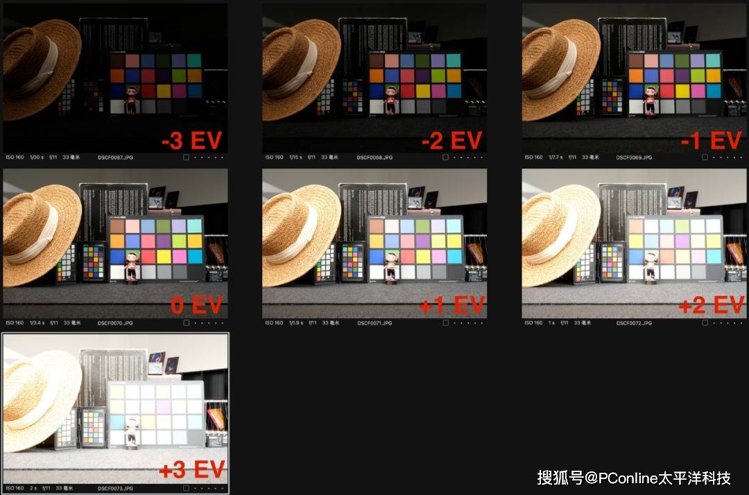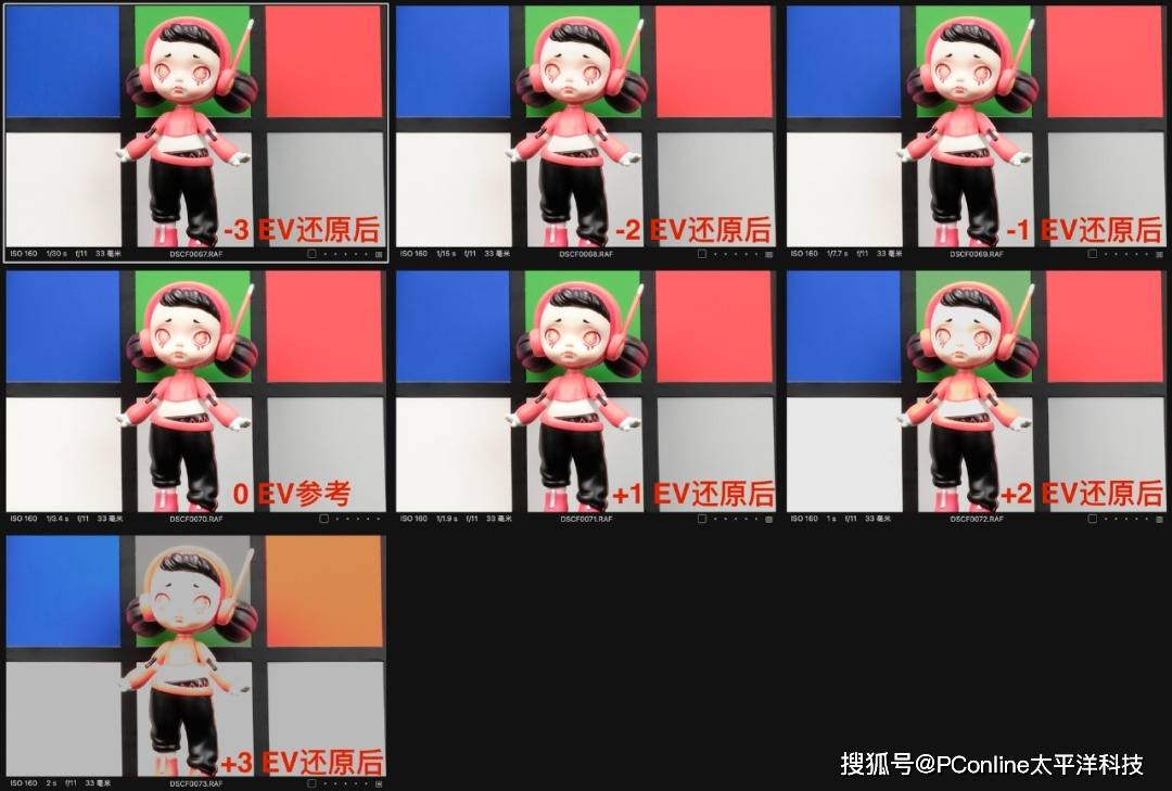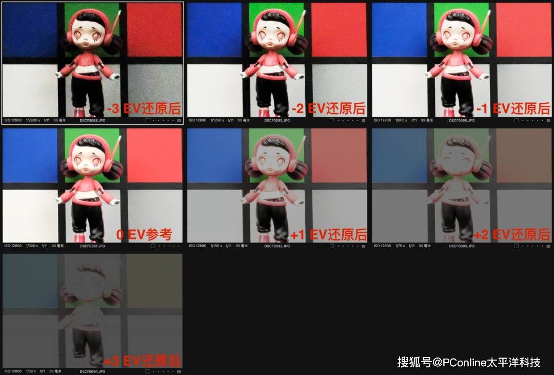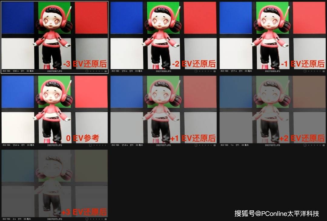 上为调整±3档曝光补偿拍摄测试样图示例(未还原前)