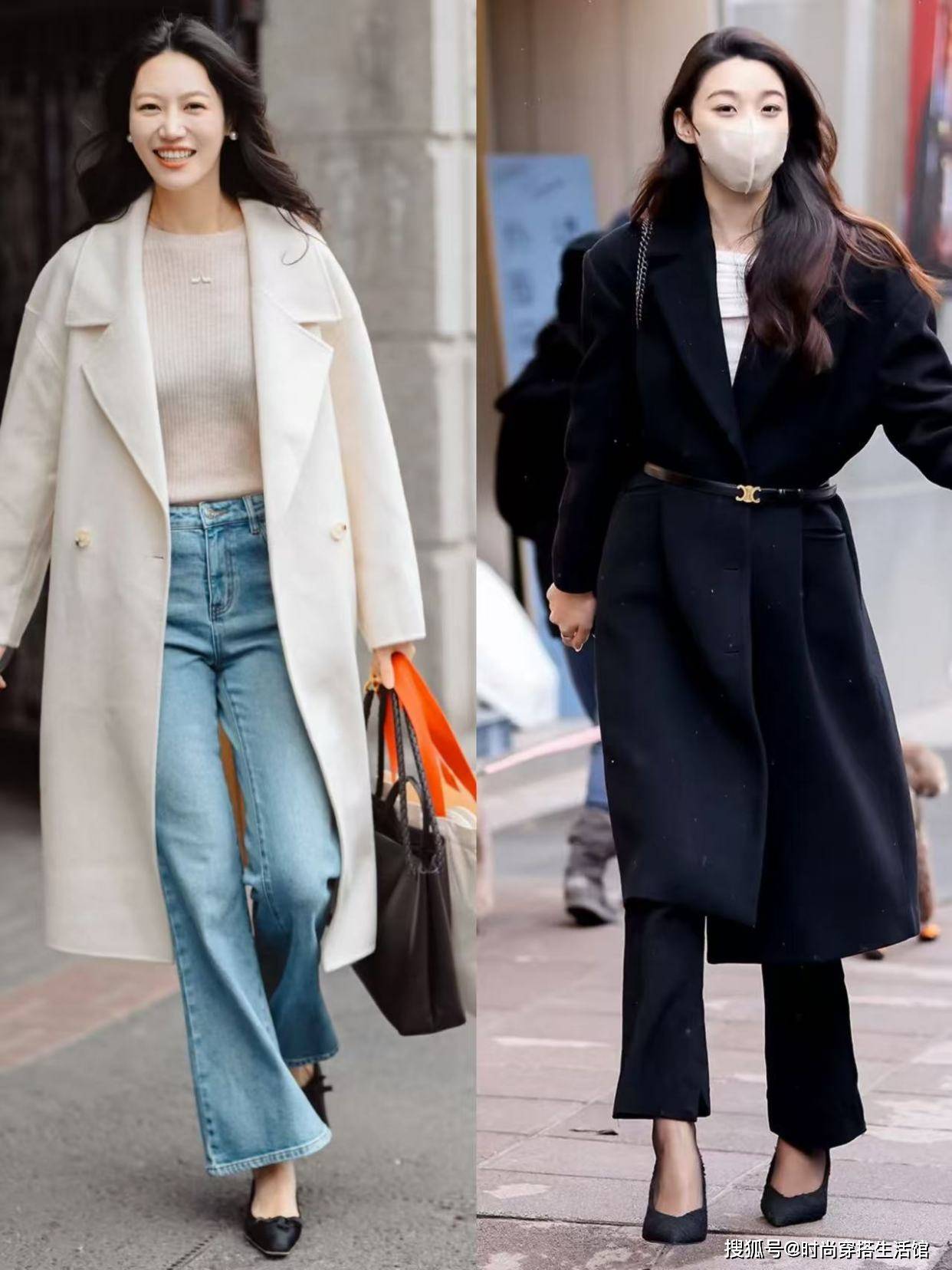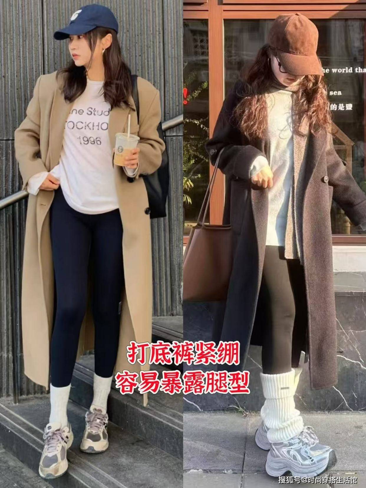 像打底裤这种常见的基础款,对于搭配大衣来说是很自然的搭配方式,但就是很多人会选择鲜艳或者不自然的肉色打底裤,自然就破坏了整体穿搭的造型感,其次就是打底裤会紧紧的贴合我们的腿型,除了会造成紧绷感之外还会暴露腿粗、腿不直等问题,从而拉低大衣的整体气质,优雅和成熟感完全尽失。