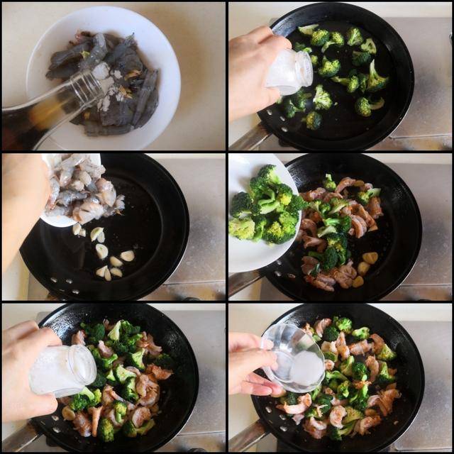 制作过程: 将鲜虾去壳后挑出虾线,冲洗干净后挤干水分加入少许盐、淀粉、料酒和姜末拌均匀腌制3分钟备用; 烧锅水加入1小勺盐和几滴油,加入准备好的西兰花放进锅中焯烫变色后捞出备用。烧热锅放入适量的油,加入少许蒜片放进锅中爆香, 加入腌制好的虾仁放进锅中翻炒至变色, 加入焯好的西兰花放进锅中翻炒几下,加入少许盐调味, 最后放入少许水淀粉勾芡即可。