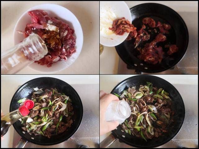 原料: 羊腿肉 1块 大葱 2个 料酒 1勺 生抽 2个 淀粉 1小勺 油盐 适量