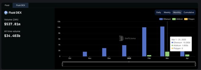 Fluid是排名前五的DEX中资本效率最高的平台,活跃于以太坊上,每月清算额超过100亿美元。在Arbitrum生态启动后表现尤为亮眼:交易量从2月的4.26亿美元激增至3月的16亿美元,表明其采用速度远超行业平均水平。Aerodrome作为Base的原生项目,展示了Base L2上流动性的持续增长。尽管Hyperliquid在现货市场排名不靠前,但在永续合约市场占据主导地位,市场份额超过60%。