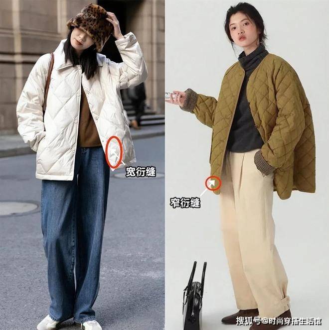 特殊的菱形衍缝是衍缝棉服的“时尚名片”,不同设计有着不同风格。宽衍缝更加大气简约,偏文艺学院风。窄衍缝精致细节,更加复古日系。 通常来说,宽衍缝设计适用性更广,长款短款都好看。窄衍缝放在中长款宽松棉服上才时尚,要是换成修身短款,就瞬间变成奶奶衫了哦~