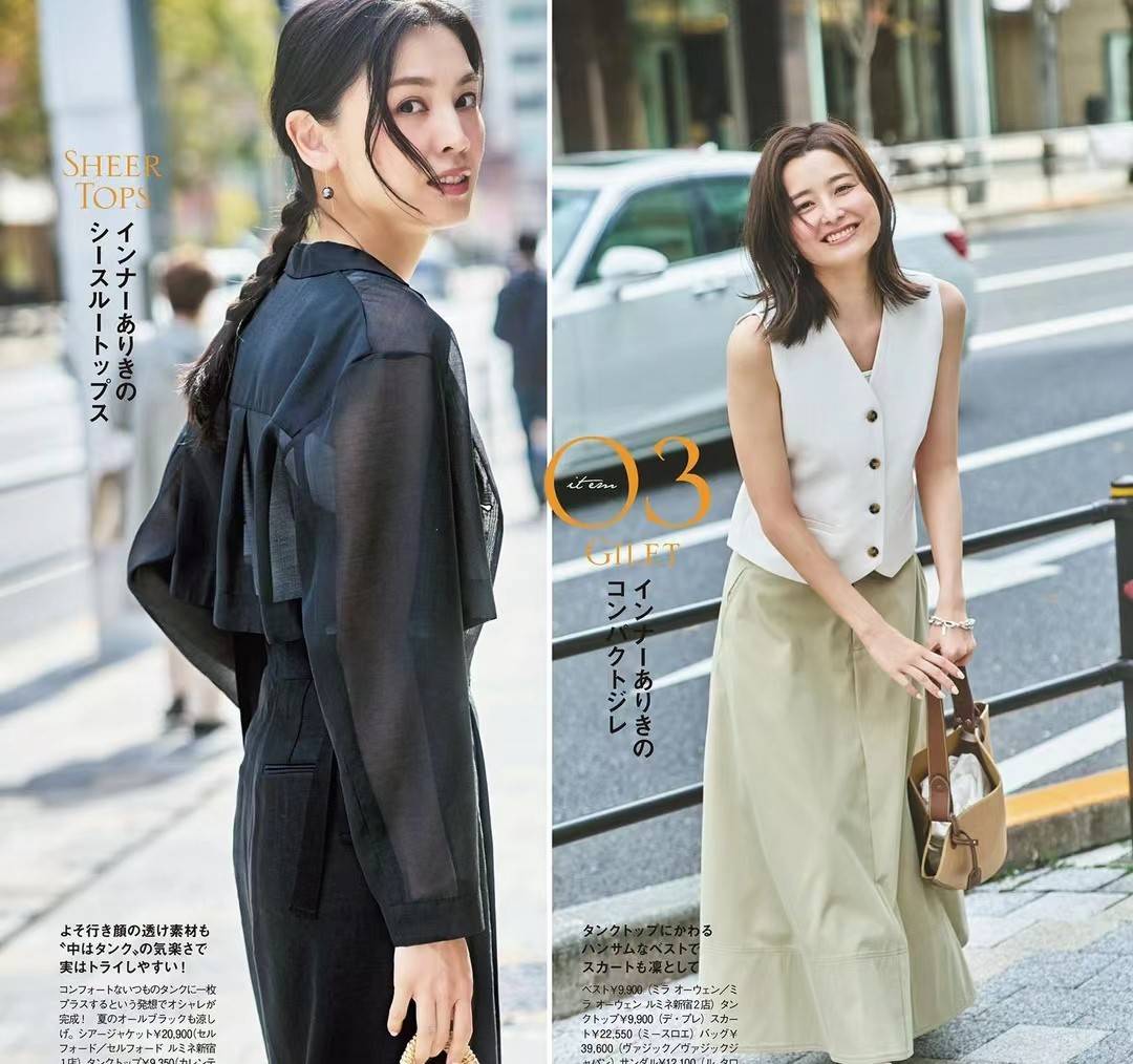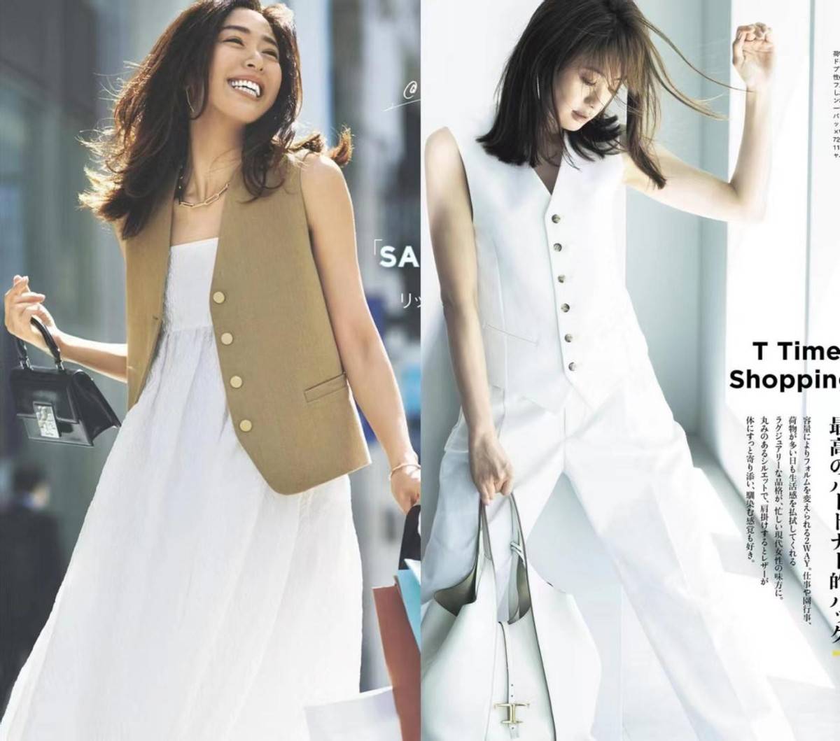 除了吊带背心之外,在很多日系穿搭之中,我们也可以看到西装马甲的身影,只是夏天使用它的方式会有一点不一样,并不需要叠加衬衫,而是直接单穿,依然也会涵盖着正式又大气的效果。