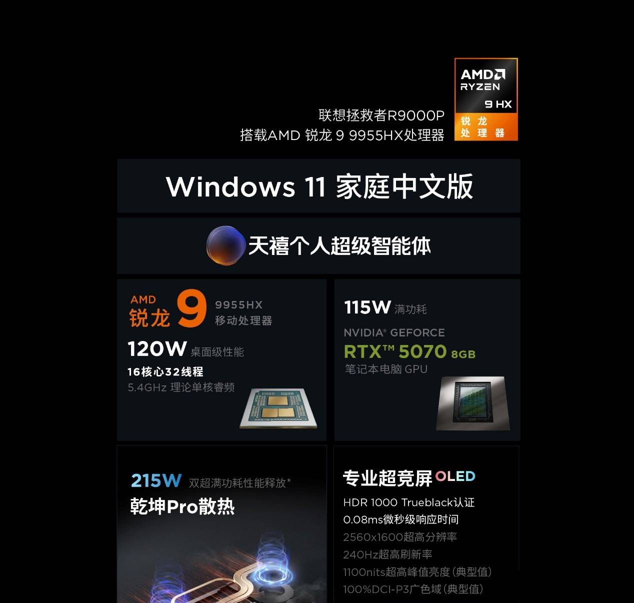 如果说数据层面的对比还稍显抽象,那么把目光放到真实机型上,一切就变得具体了。以联想拯救者R9000P为例,它是目前最能代表9955HX平台性能释放的旗舰游戏本之一。