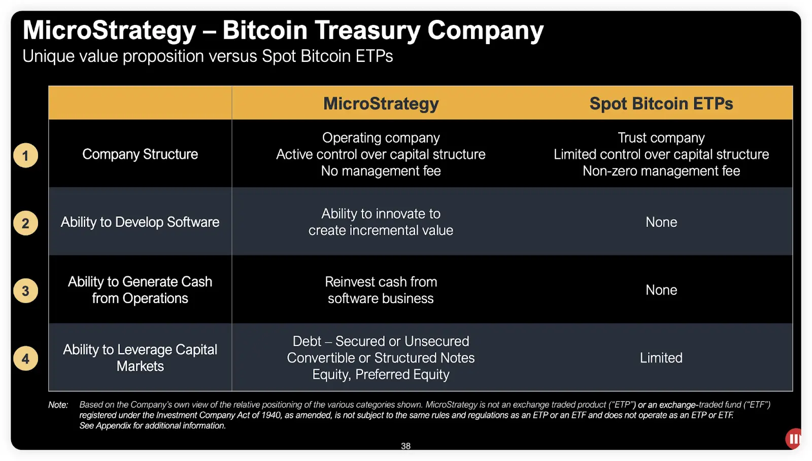 作为核心资产,比特币相比现货ETF赋予MicroStrategy更高的资本运作灵活性。公司将其比特币储备运营比作石油公司的石油储备。就像石油公司处理未提炼与已提炼产品一样,MicroStrategy也将比特币储备视作一种资本保值工具,通过这一核心资产,公司得以提升生产力并实施创新的金融策略。