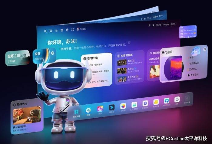 电动AI智控云台的加入,彻底解决了传统投影安装麻烦,摆放位置太局限的问题,它能够自动完成空间扫描、校正与对焦,误触后也能瞬间恢复方正画面。配合追光指向遥控与无线云台控制,只需轻轻指向屏幕,就能精准完成点选、滑动等操作,老人小孩都能轻松上手。全新的当贝AI OS 6.0接入通义千问、豆包等多个AI大模型的5大AI智能体,不仅能通过远场语音实现“脱手操控”。
