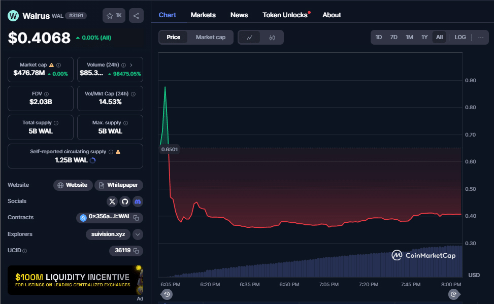最近,Sui 生态迎来了一个重量级选手——去中心化存储协议 Walrus (WAL),它带着 1.4 亿美元的融资和 20 亿美元的估值,正式登陆 Upbit、Bybit、Kraken 等交易所。