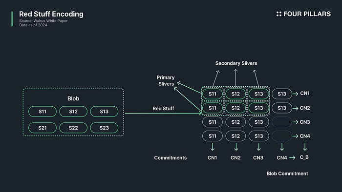 想象你有一张很大的照片(比如一个 1GB 的视频文件),你想把它存在一群朋友的电脑上,但又不想让每个朋友都存一份完整的文件,因为那样太占空间。Walrus 的 RedStuff 编码就像一个 "切片魔法师",它会把这张照片切成很多小块(称为 "切片"),然后用一种特殊的方式 "打乱" 这些小块,分给不同的朋友保管。