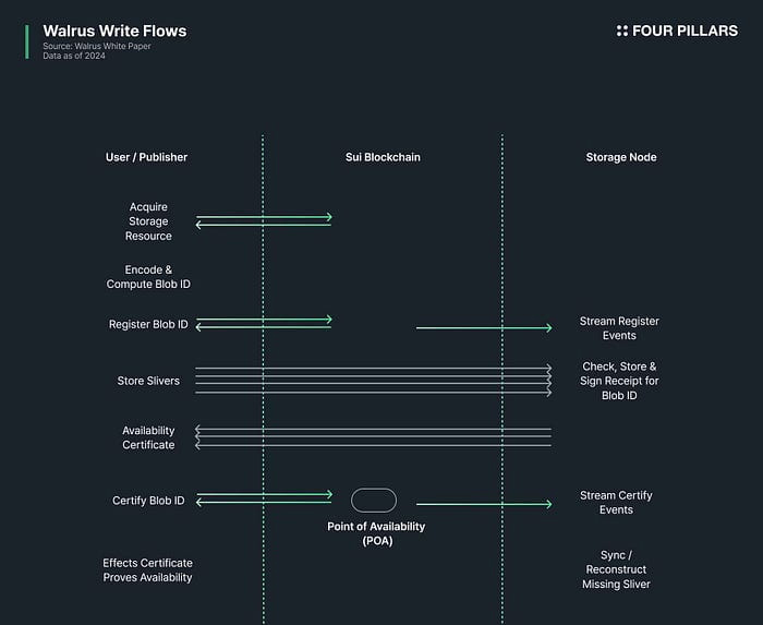 Walrus 在测试阶段的表现也很亮眼。数据显示,测试网吸引了 1400 万个账户,处理了 500 万个 Blobs,总计 27.85TB 的活跃使用量,平均每个 Blob 大小为 5.57MB。Blobs 是 Walrus 协议中存储的大型二进制文件(比如图片、AI 数据集),通过去中心化节点分片存储,并利用 Sui 区块链协调存取与支付。这说明 Walrus 已经具备了处理高频数据需求的能力。