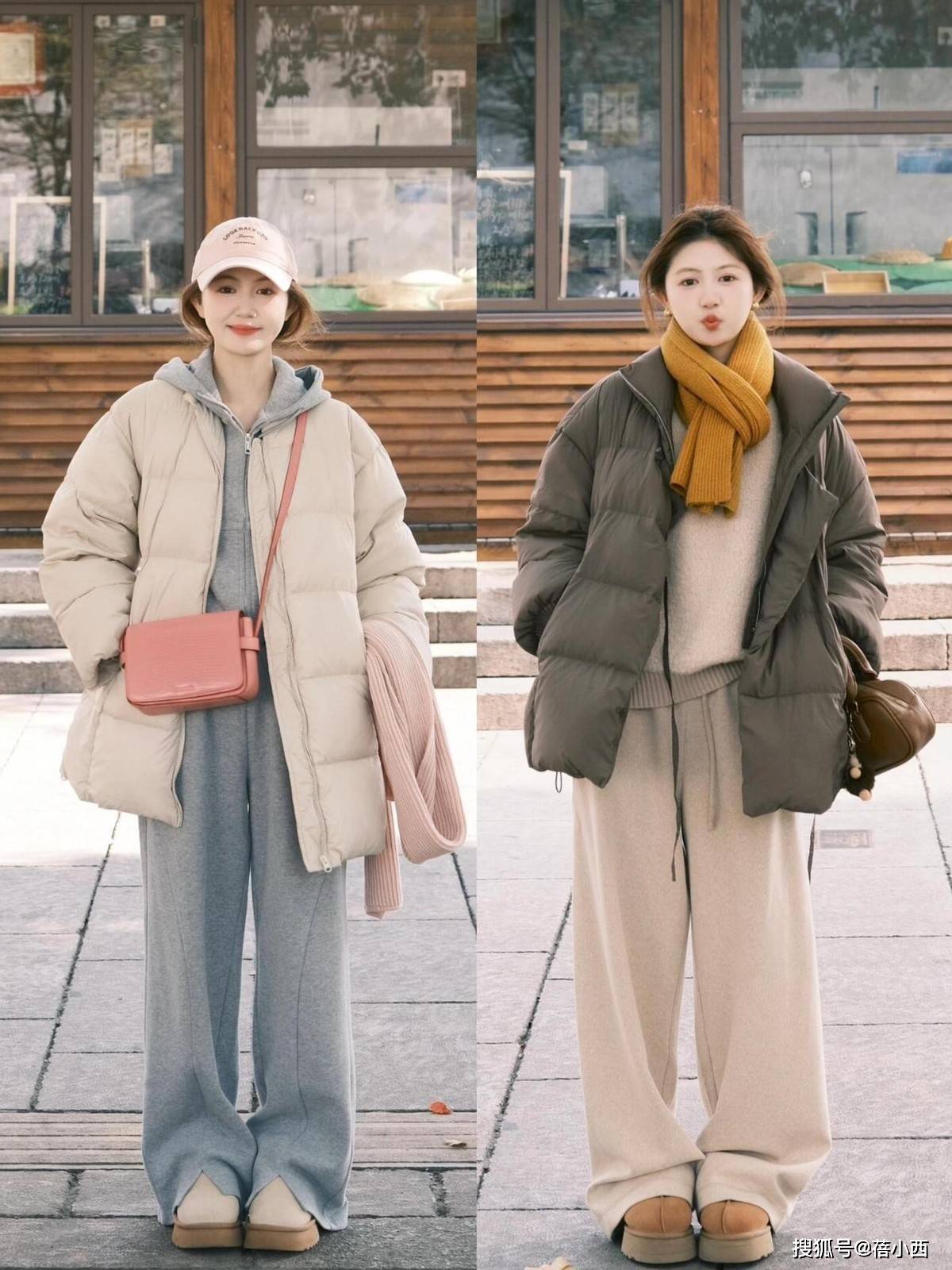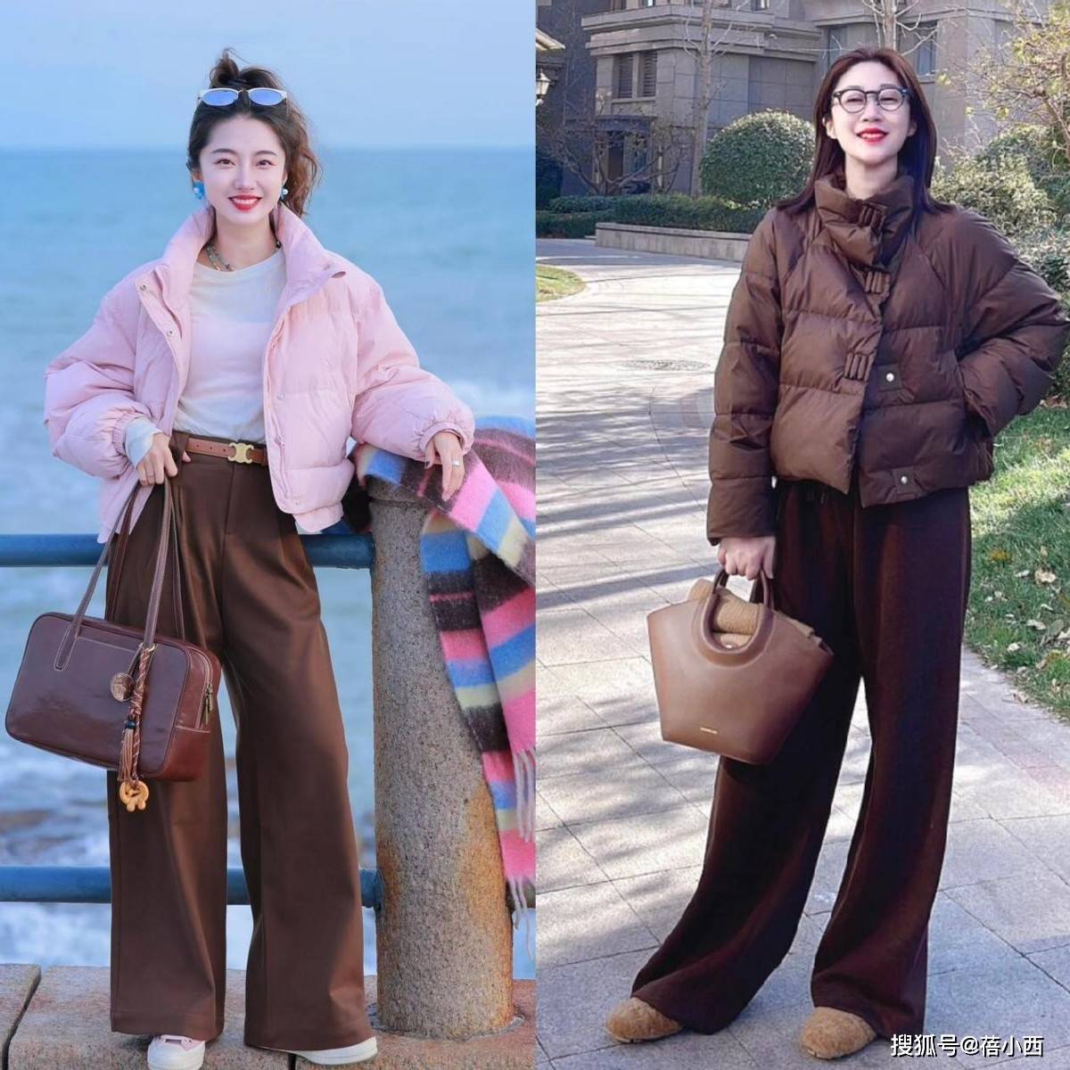 2,羽绒服搭配阔腿裤,松弛还藏肉