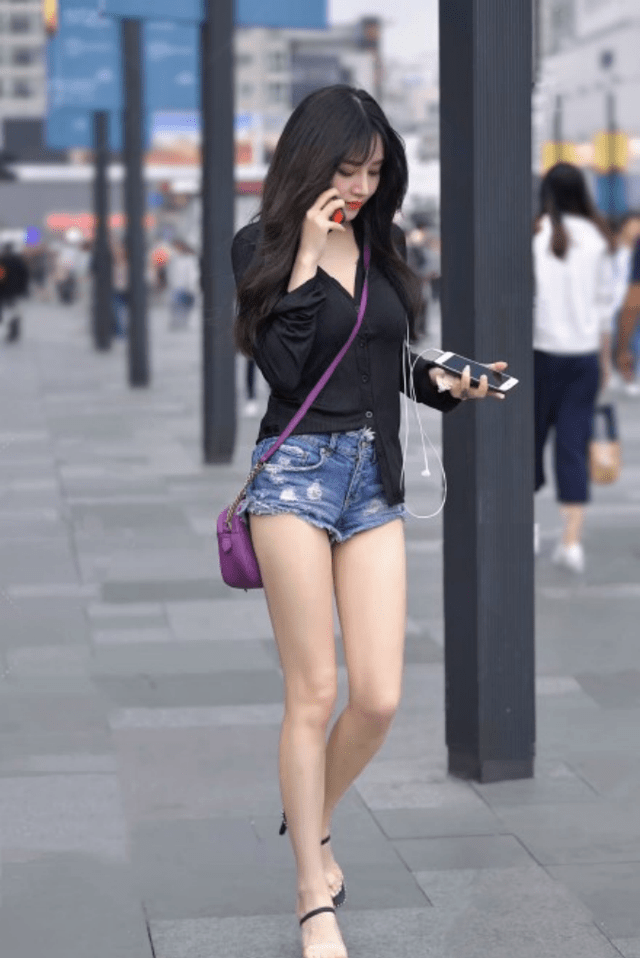 在下半身这也是一条十分常见的蓝色短裤,这条短裤可以说基本上走上街头随处可见,但是能够搭出小姐姐这种性感气息的搭配小编还是第一次见。这条小短裤的配色和上半身的配色十分配合,同时也充分展示了小姐姐的大长腿,其实身材好怎么穿都能足够好看,这就是身材好的优势。今天的搭配就带大家了解到这里。