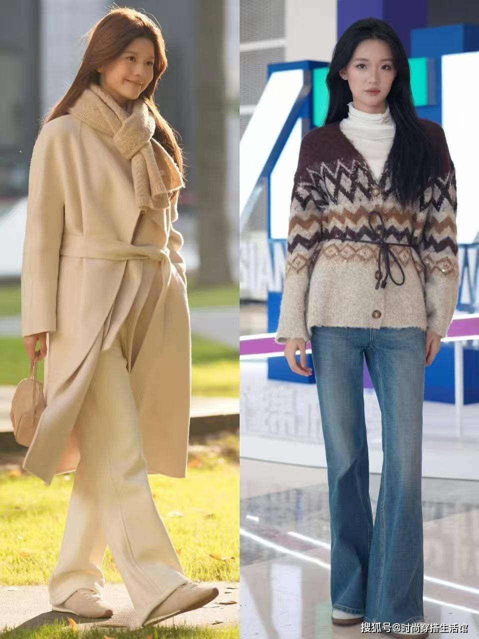 那么我们挑选阔腿裤的时候要优先考虑选择舒适高级的面料,比如像是羊毛、羊绒、针织、牛仔等有厚度又硬朗的材质,这样上身后才更加的有垂感和舒适,完美的修饰我们腿部线条,将腿粗、腿不直问题全部掩盖起来。