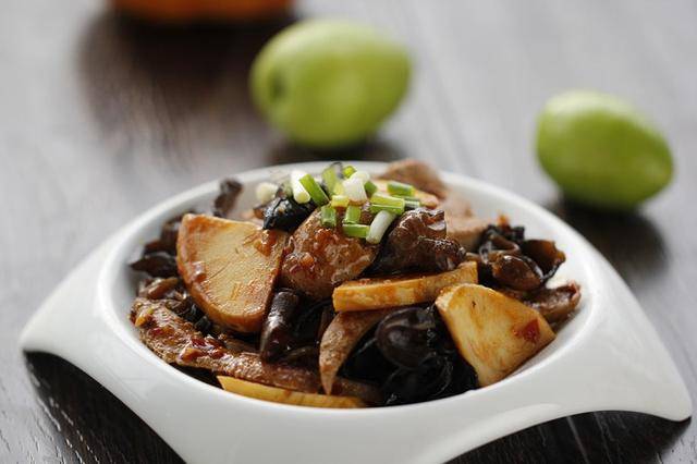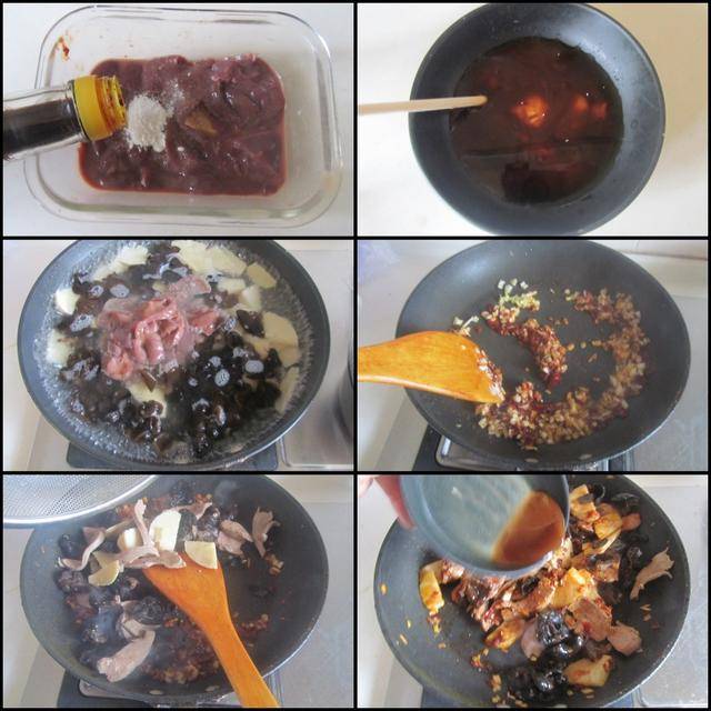 原料: 猪肝 黑木耳 笋块 剁椒、郫县豆瓣酱、姜葱蒜、糖 酱油、香醋