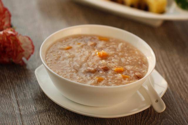 第三道菜:花生红薯粥, 花生、核桃等坚果类食物含有丰富的锌和其他营养素,也适合适合孩子补锌时食用。花生米不仅可以作为零食直接吃,也可入菜,煮粥,将它搭配上红薯一起煮粥,香糯暖滑, 暖身暖胃,吸收好养脾胃,还补锌。