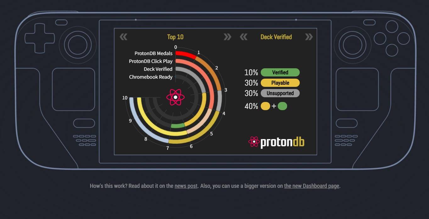 2022年,Steam Deck的横空出世,标志着VALVE战略的成熟。它不再依赖原生移植,而是通过Proton兼容层解决问题。Proton 在兼容性与性能方面的改善,使得Steam OS终于成为了可以轻松运行大量 Windows 游戏的平台。
