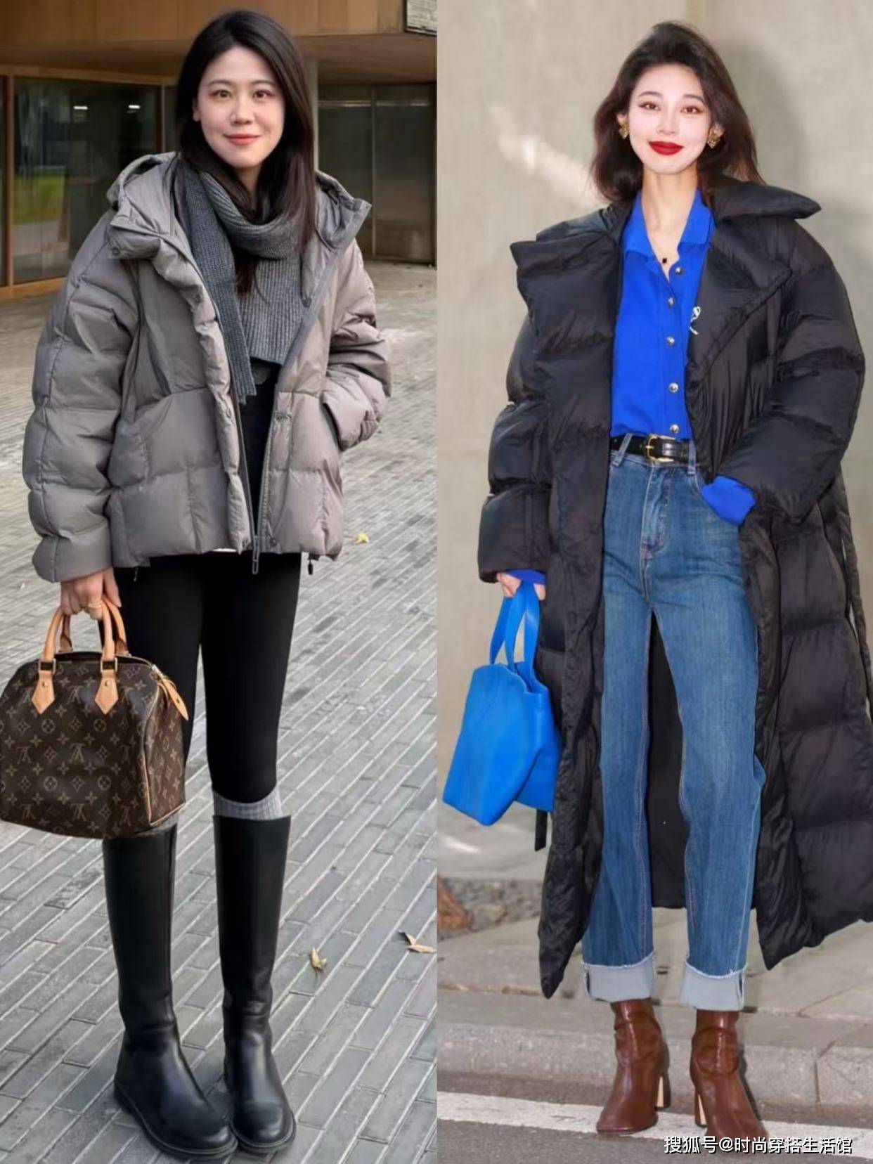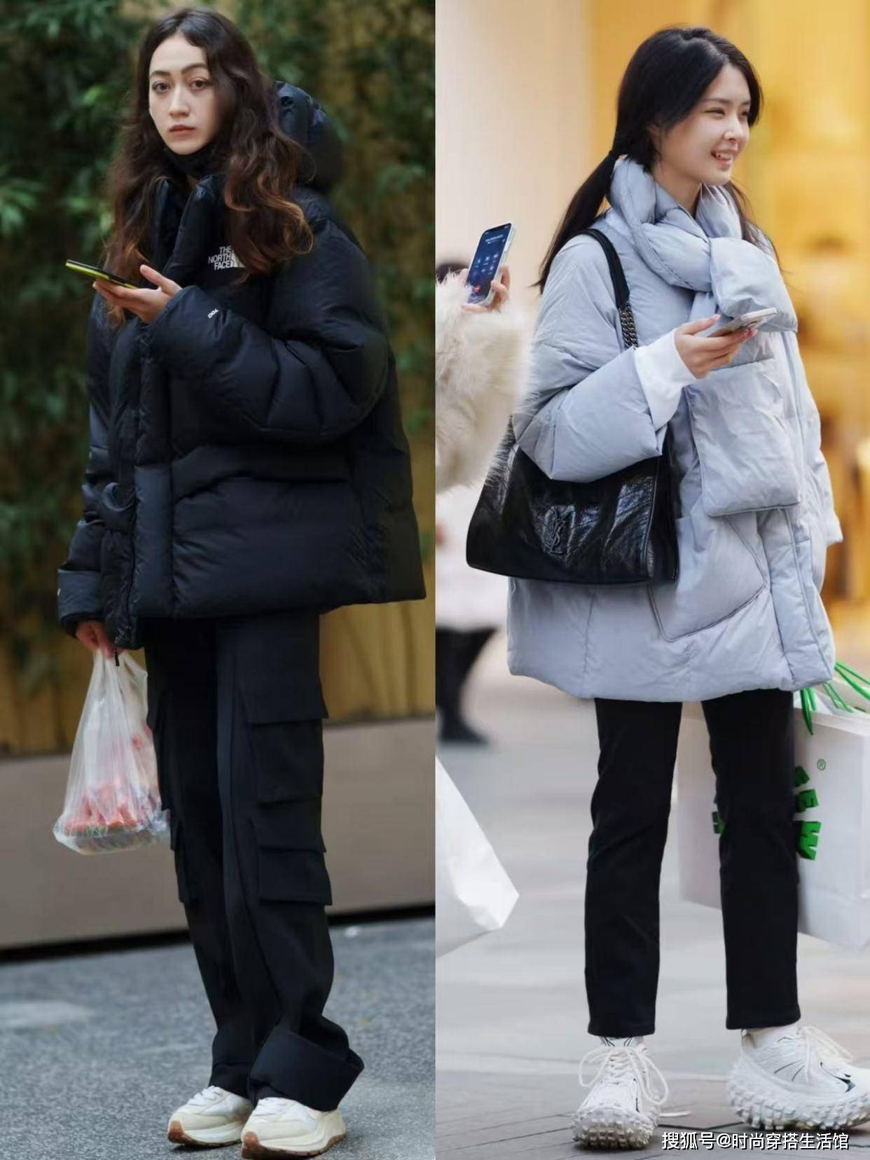 像是腿粗、腿型不直、腿胖的女性可以选择穿直筒裤、阔腿裤修饰腿部赘肉,从而让自己的腿型看起来更加显瘦苗条,但对于身材纤细、腿长腿细的女性我们可以选择穿紧身裤,尤其是上半身搭配宽松的羽绒服,我们利用松紧结合的方式,完美的凸显出腿部线条,和羽绒服还能形成宽窄相互对比,无形中就凸显了大长腿。