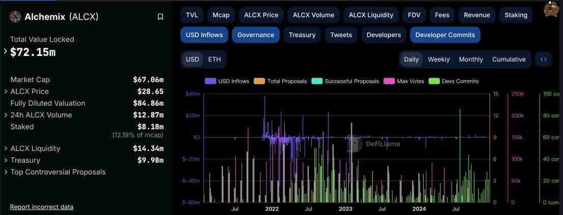 在 TVL 骤降之后,美元基本不再流入 ALCX 代币中。但社区的态度比较积极,开发者也没有过多的套利行为。