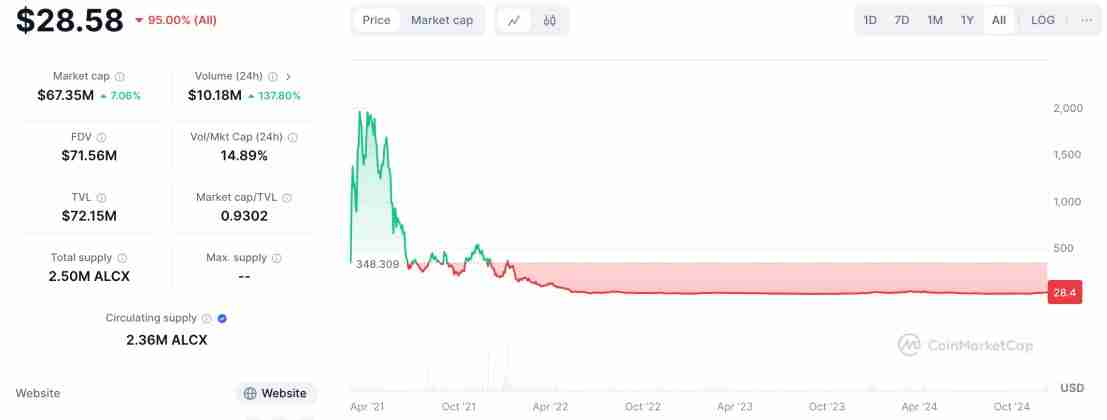 但从长线趋势来看,目前的 ALCX 即使有所上涨,也远远没到最初的发行价位。