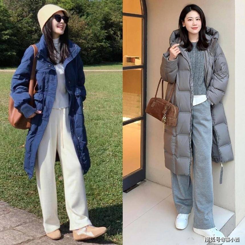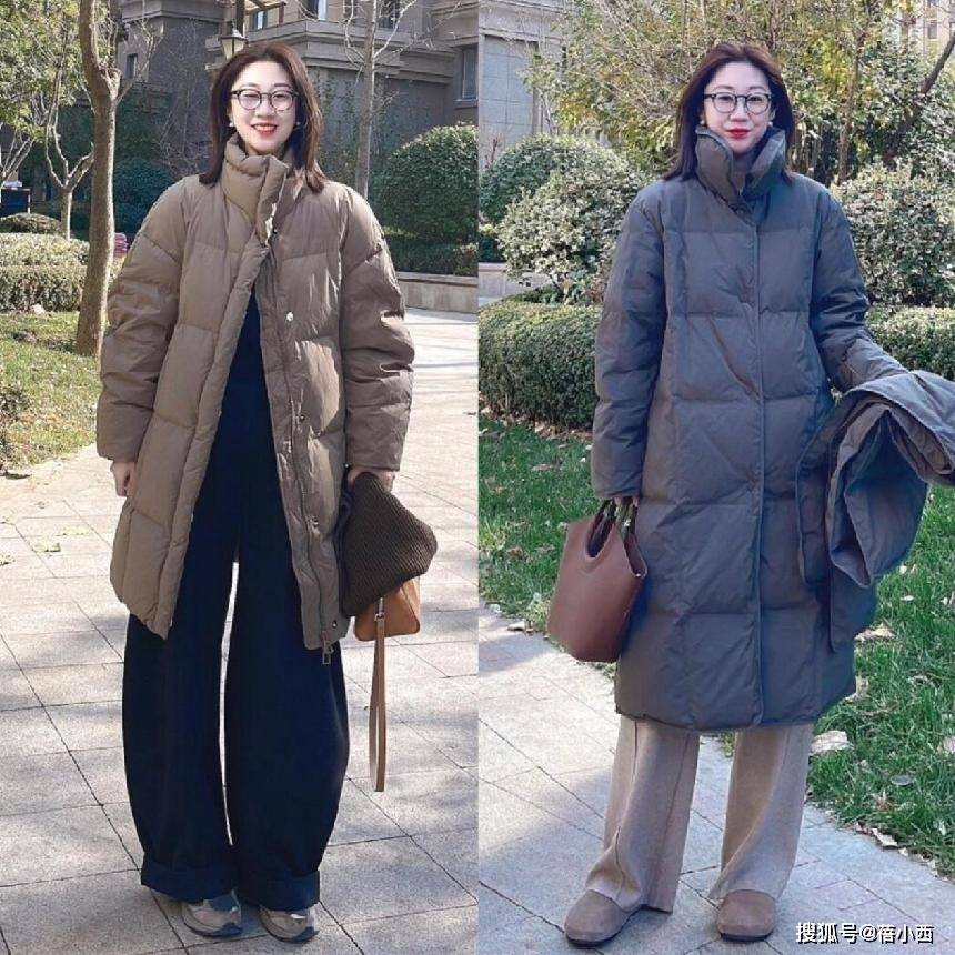 再说说长款羽绒服+阔腿裤,这一组搭配可是近几年超火的松弛感搭配,主打高级慵懒,尤其适合追求慵懒随性气质的成熟女性,宽松的阔腿裤能包容身材缺点,又能穿出毫不费力的时髦感。