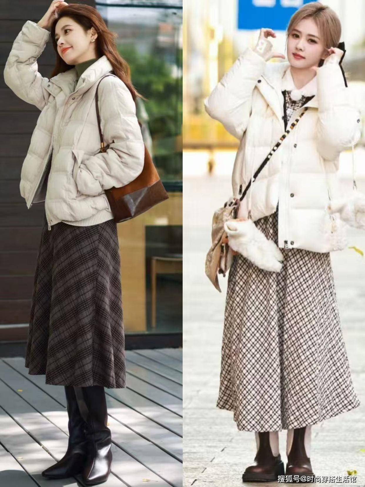 此外对于秋冬季节怎么能少了格纹裙呢!其实有很多中年女性觉得格纹裙的线条太过于板正,上身后会显得过于严肃和呆板,那么这时候的我们可以选择斜格纹的图案,不仅有格子的文艺感,同时还能增添造型的律动感,尤其是选择格纹元素轻松用在各种穿搭场合,比如搭配格纹西装、格纹西裤等等,简直就是优雅和通勤的最佳选择。