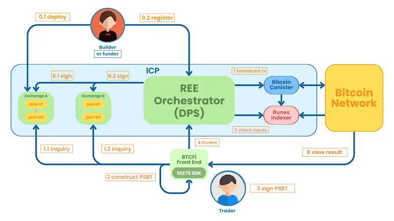 提交到内存池的交易在极端情况下可能被清除,需要回滚。这涉及REE设计的“Exchange-Pool模型”和池的状态链(State Chain)结构,感兴趣的开发者可以参考《REE白皮书》和即将开源的示例应用RichSwap,了解其代码实现逻辑。
