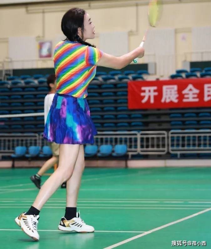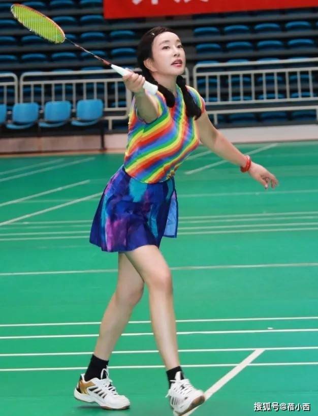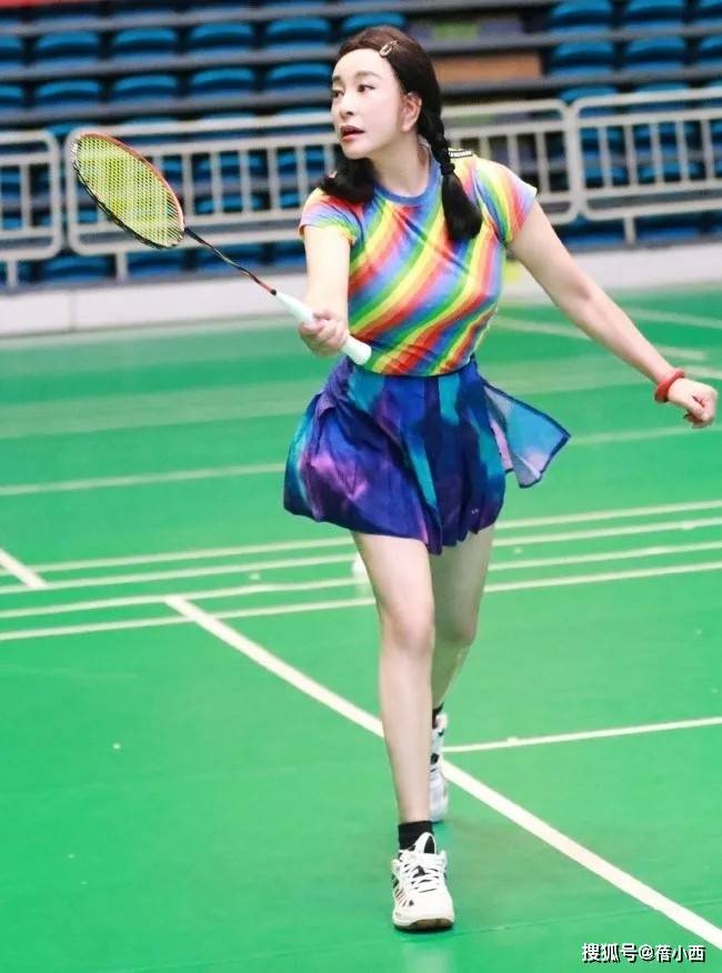 再看这一身搭配,谁能想到,73岁的刘晓庆扎着双马尾在羽毛球场上动起来时,那股劲儿能把“青春感”焊在身上,不输年轻的小姑娘。上半身的彩虹条纹短袖特别吸睛,高饱和度的撞色衬得脸色透亮,下半身搭配蓝色短裙,裙装选了轻盈的面料,跑起来飘逸灵动,既不耽误运动,又比运动裤多了点灵动。