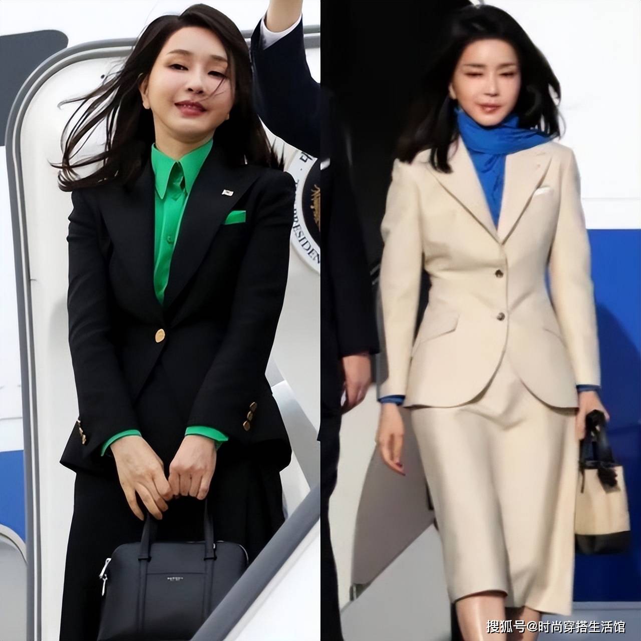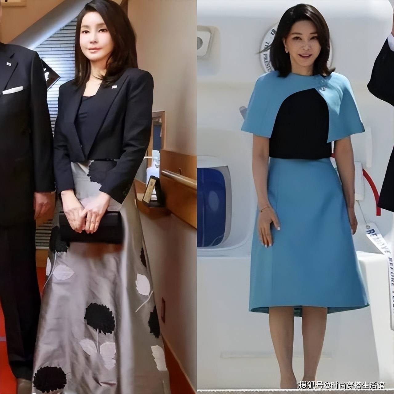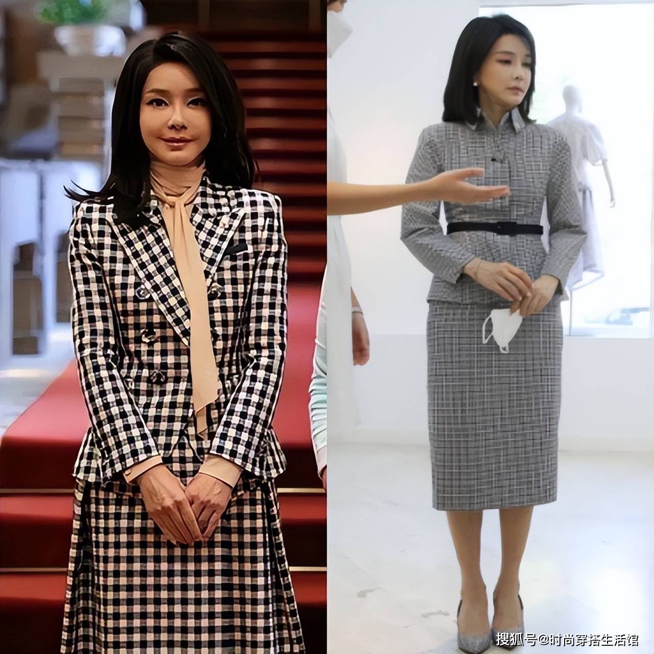 服装的裁剪得体,往往会让穿搭者更加优雅,反之则显得非常low,毫无特色,气质丢分明显。毕竟是总统的老婆,金建希的西装版型非常别致,在腹部及下面的套装裙中都花了不少心思,裁剪得体,看起来质感很强,带来一种古典优雅美。