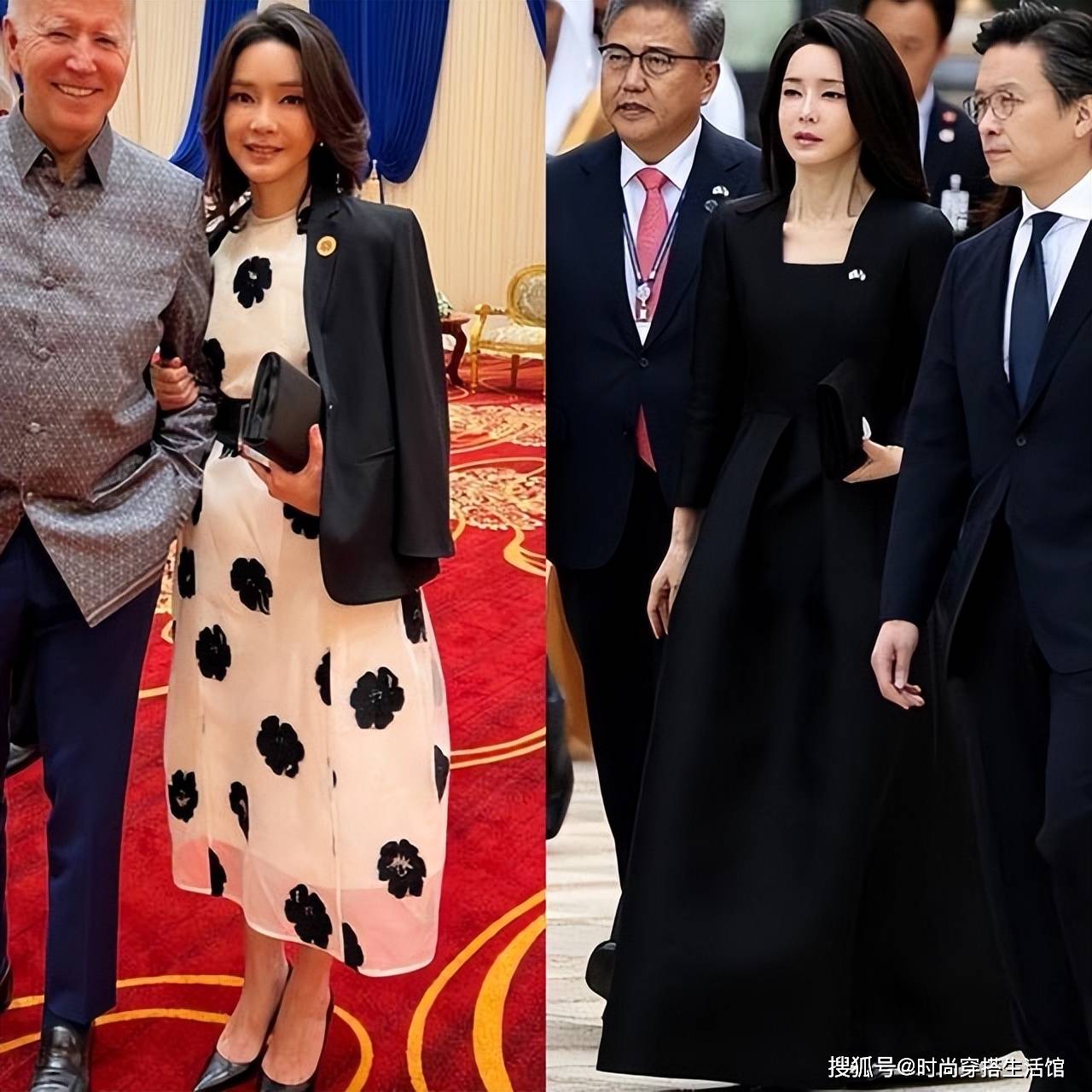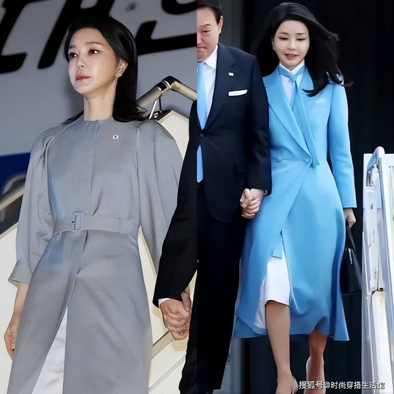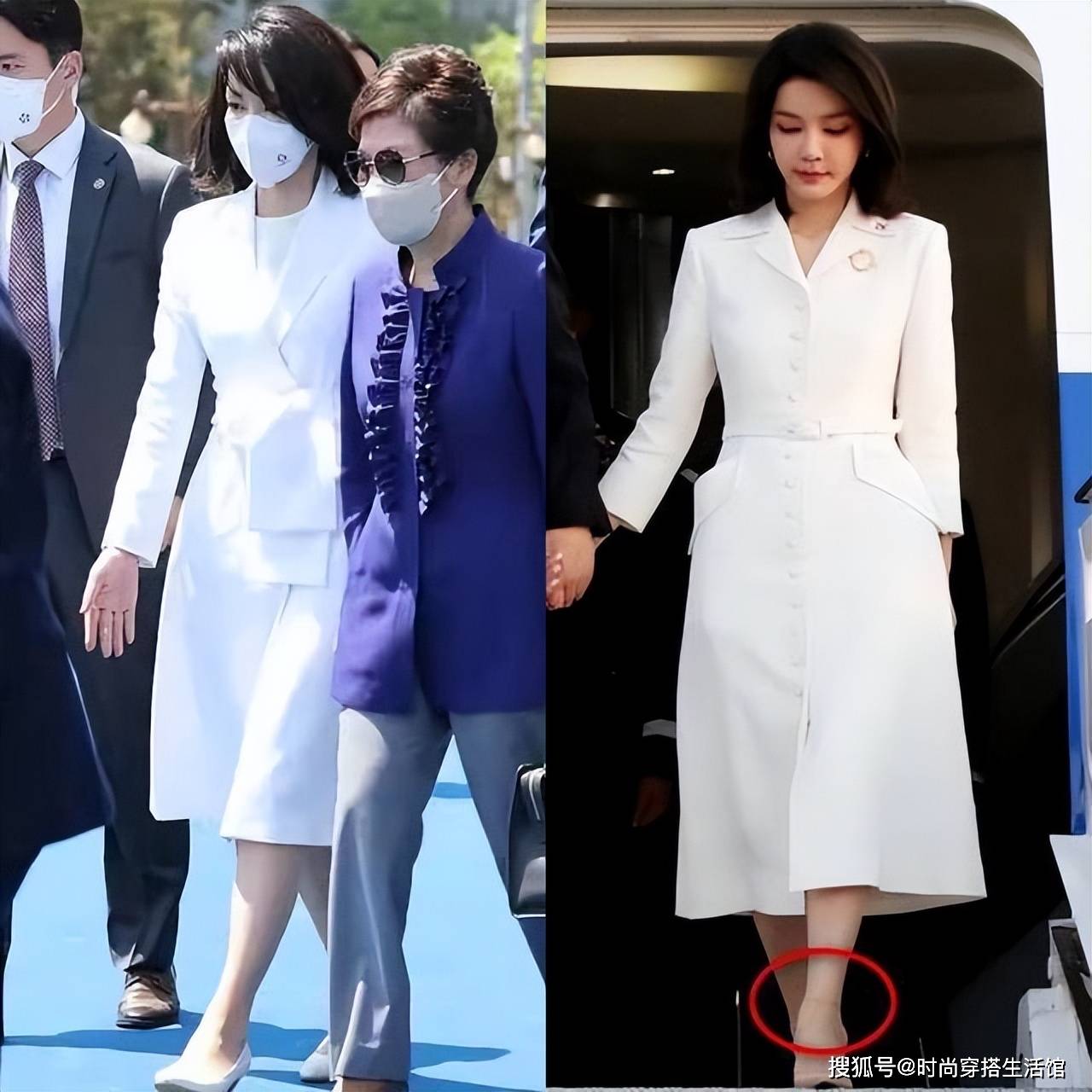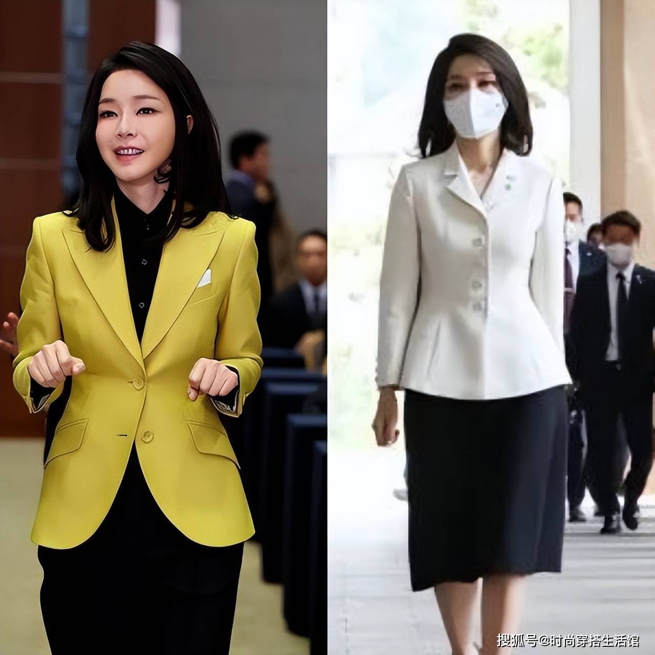 服装的裁剪得体,往往会让穿搭者更加优雅,反之则显得非常low,毫无特色,气质丢分明显。毕竟是总统的老婆,金建希的西装版型非常别致,在腹部及下面的套装裙中都花了不少心思,裁剪得体,看起来质感很强,带来一种古典优雅美。