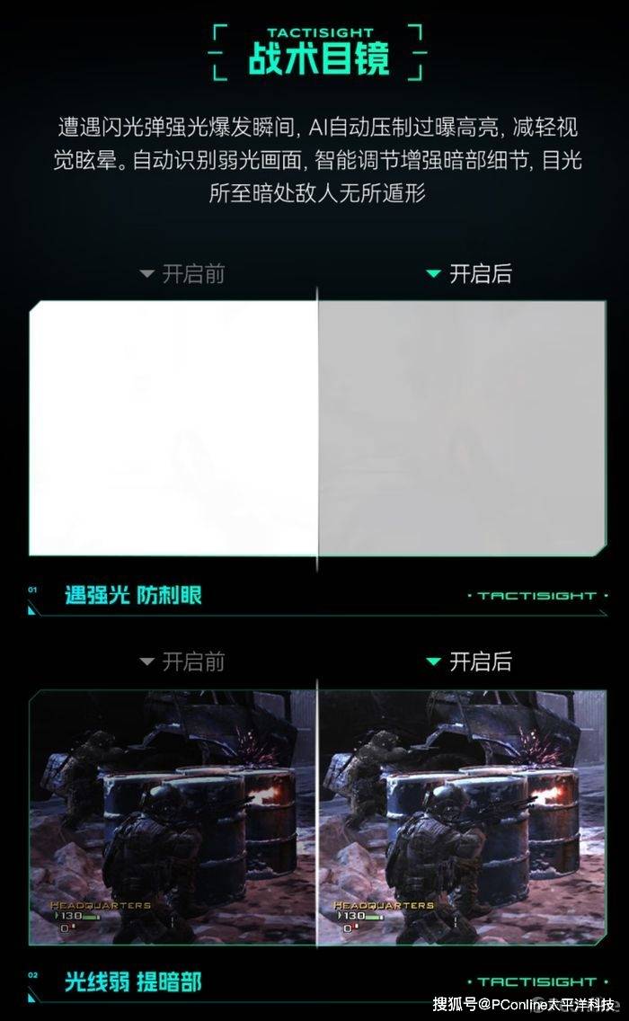 作为一台专业电竞显示器,常规的暗部提亮和屏幕准星、游戏计时功能暂且不提。蚂蚁电竞ANT257PF还内置了不少对于玩家体验提升明显的特色功能,如战术目镜,在遭遇闪光弹强光爆发瞬间,AI自动压制过曝高亮同时,也能智能识别暗场画面,提亮暗部画面。
