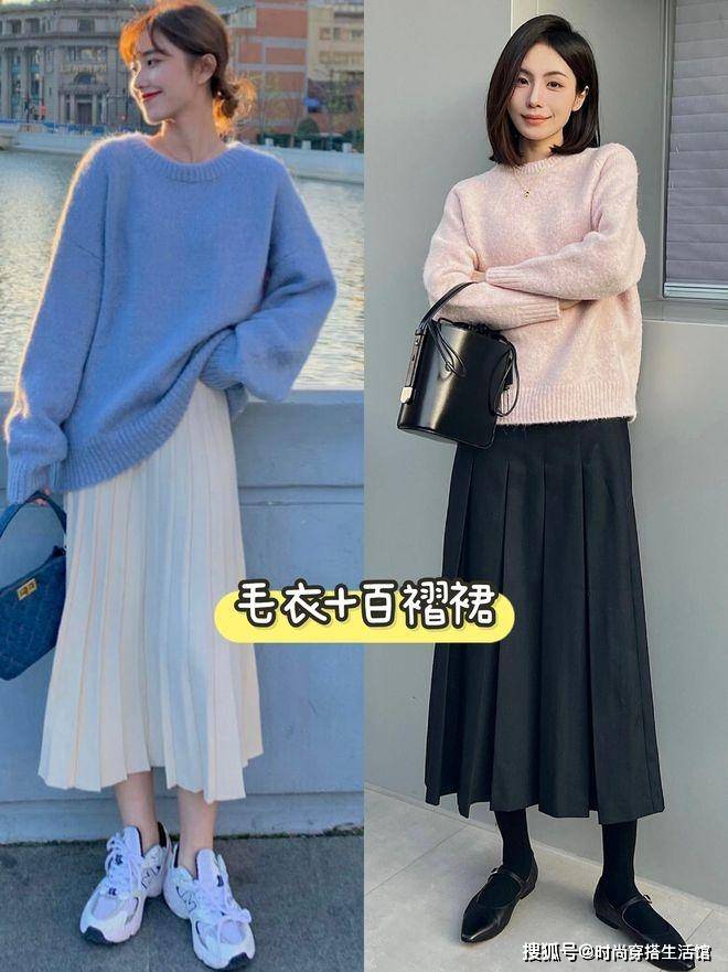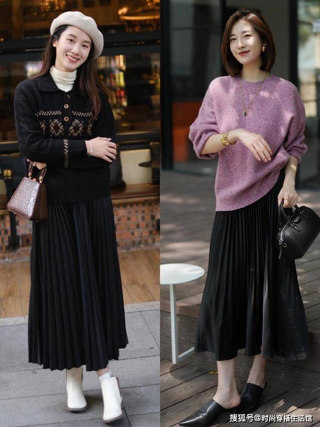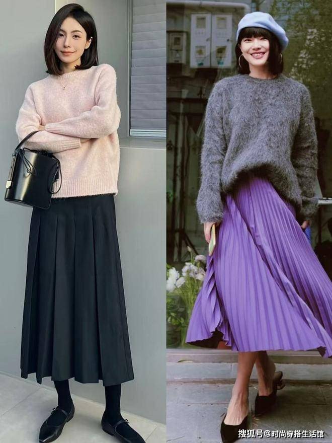 冬天穿毛衣我们首先的就是推荐选择百褶裙,现在的百褶裙不单单是年轻小姐姐的专属,同时还是中年女性的专属,尤其是百褶裙的设计采用的是细长利落的褶皱线条和飘逸的裙摆,视觉上看起来更加的显瘦和耐看,不管是选择搭配宽松的毛衣合适紧身的毛衣,完全不用担心会破坏百褶裙的生动飘逸感。