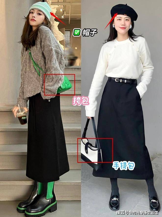 最后很多人担心穿毛衣和半身裙会显得单调和乏味,这时候的我们可以借鉴细节的点缀,这样不仅能够凸显出氛围感同时还能转移视线焦点。比如像是帽子、围巾、包包、项链、耳环、墨镜等等,这些配饰加入后轻松凸显出造型的氛围感,但我们在选择配饰搭配的时候要避免过多的点缀,全身保持2-3种配饰完美的转移视线焦点。